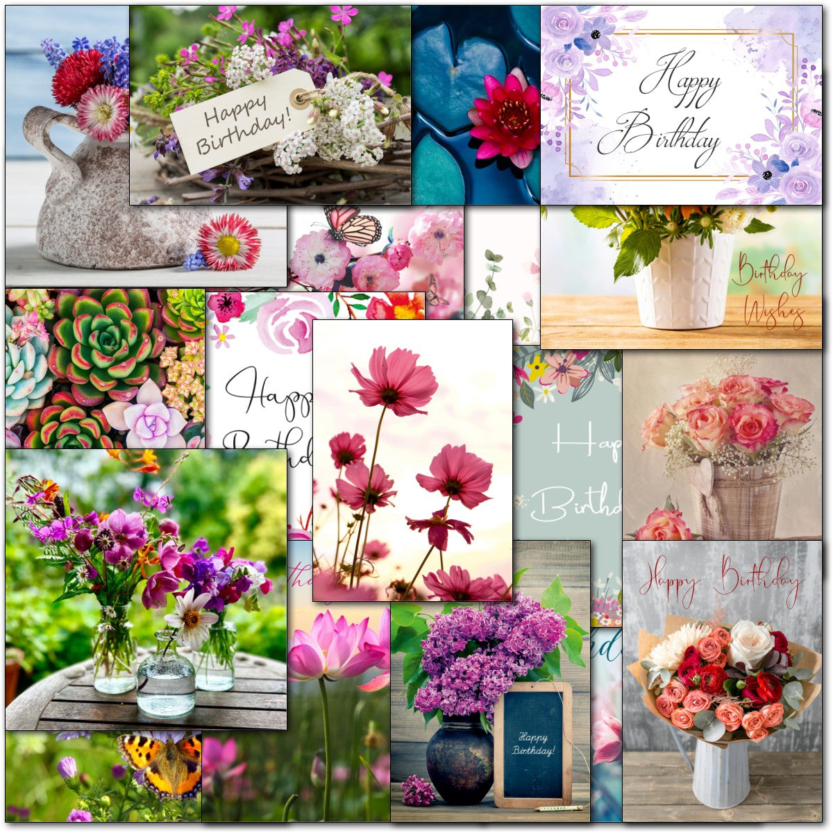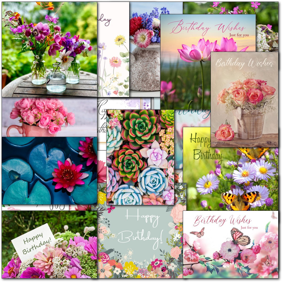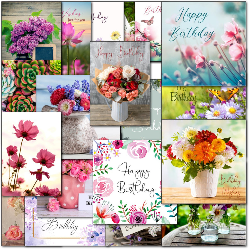 FLORAL BIRTHDAY MULTIPACK ⭐Pack of 20 high quality Flowers cards - 20 Different Designs ⭐ Professionally printed ⭐ Supplied with white envelopes⭐