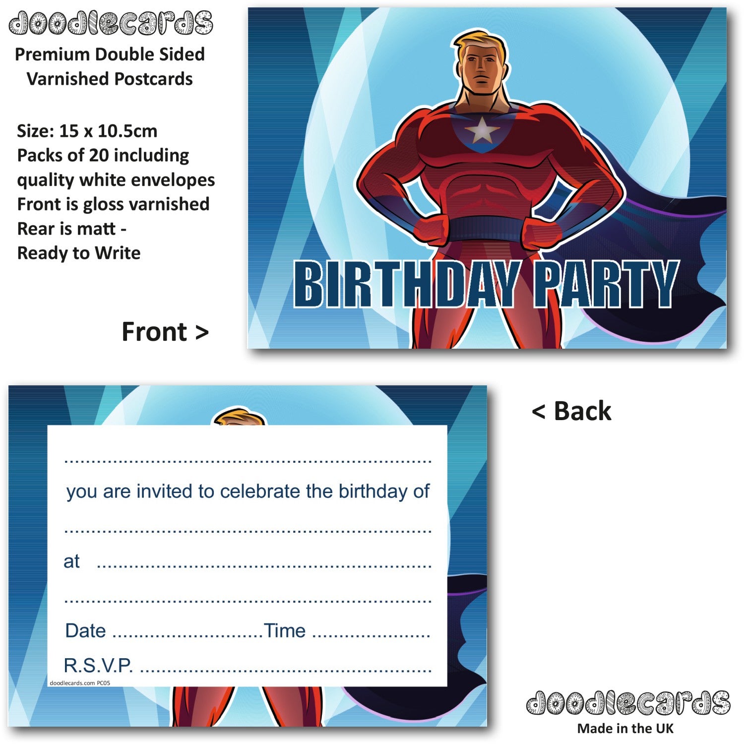 Birthday Party Invitations Superhero Pack of 20 Invites & Envelopes
