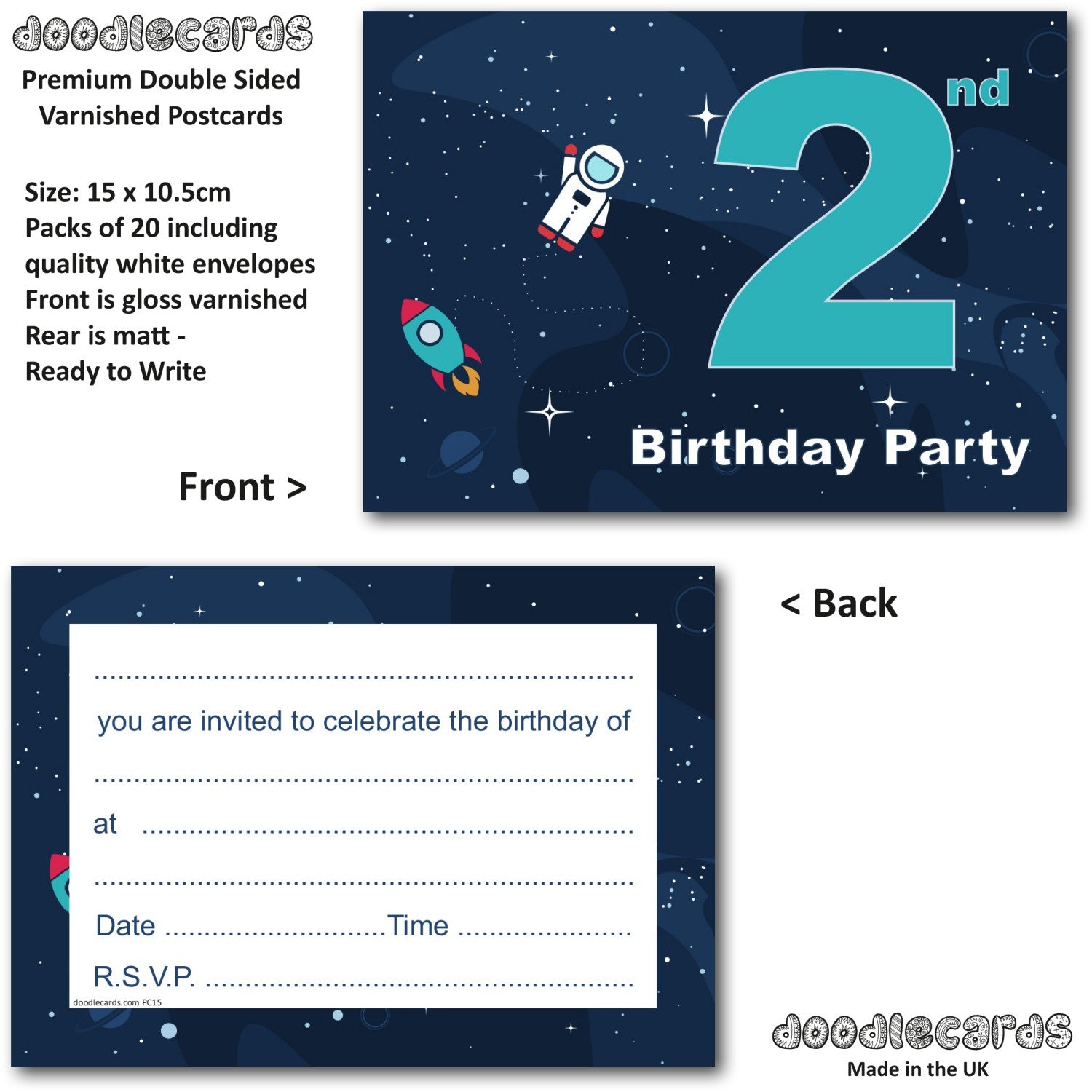 2nd Birthday Party Invitations Age 2 Male Boys Childrens Pack of 20 Invites