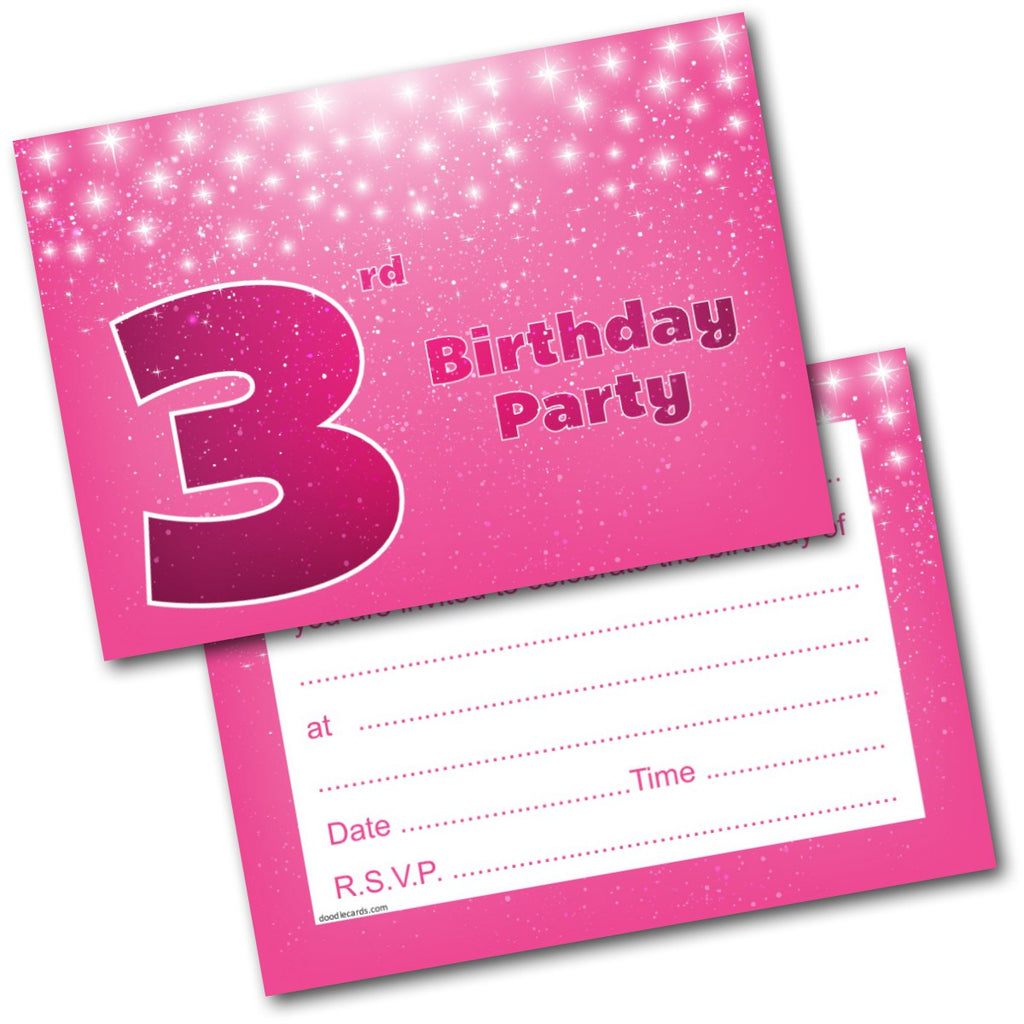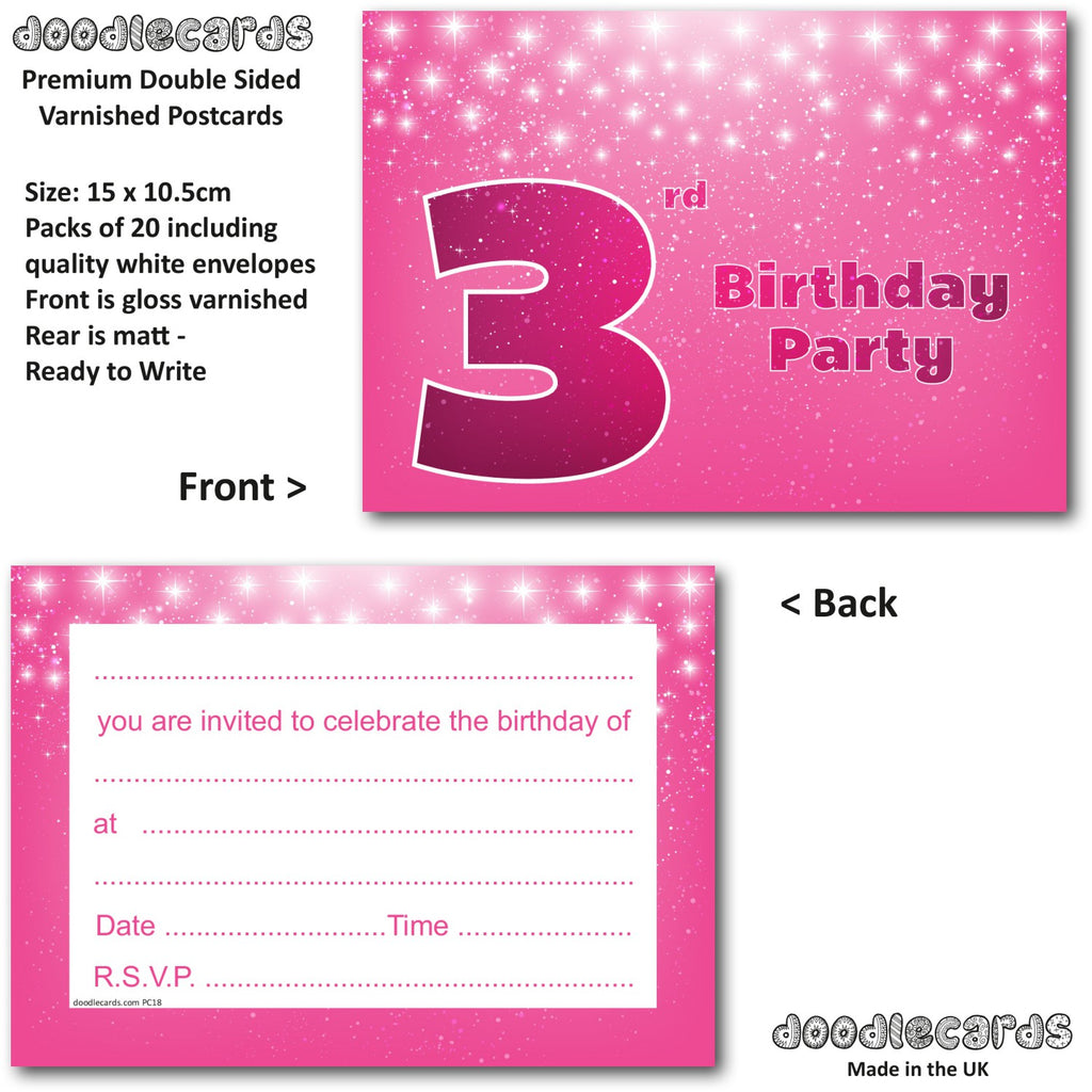 3rd Birthday Party Invitations Age 3 Female Girls Childrens Pack of 20 Invites