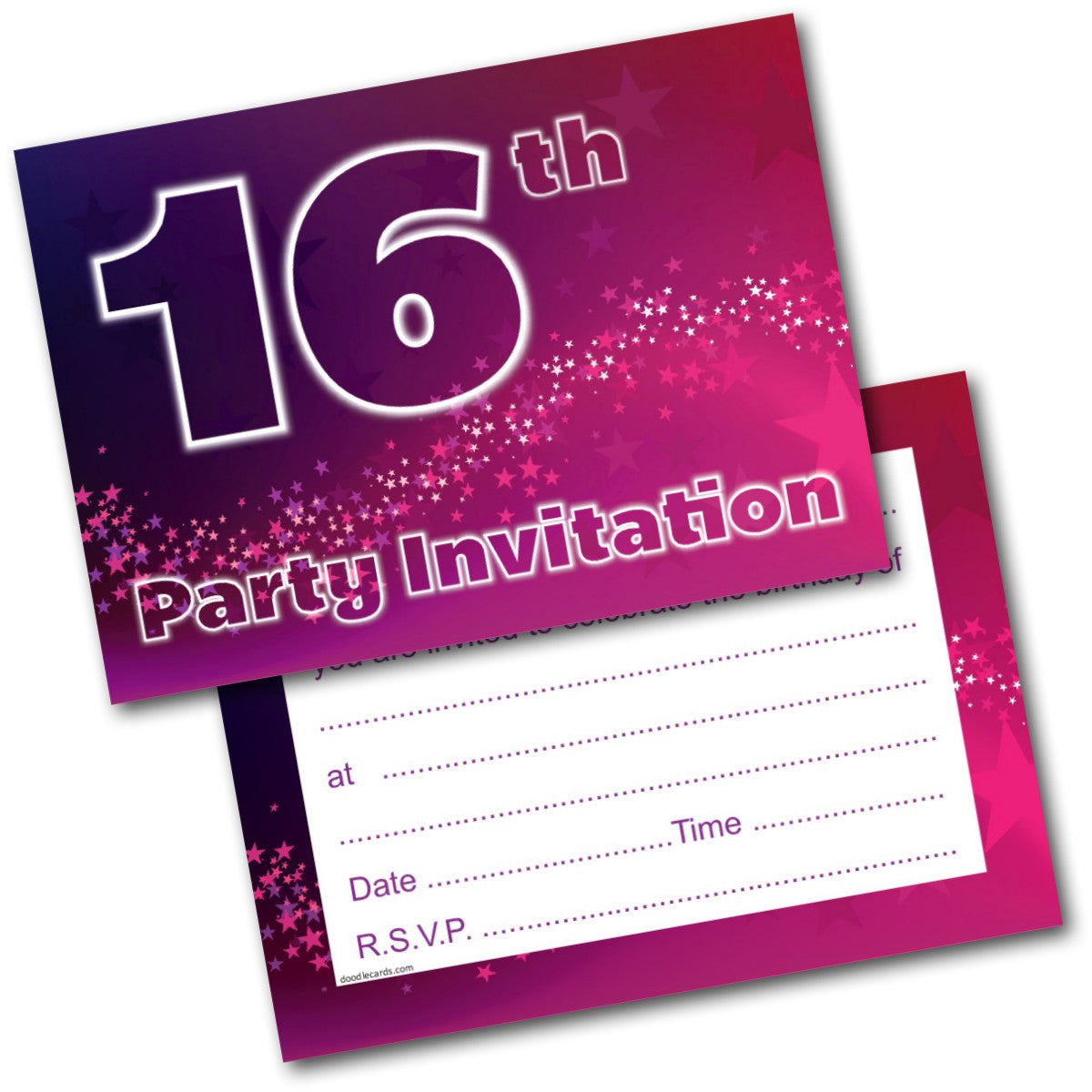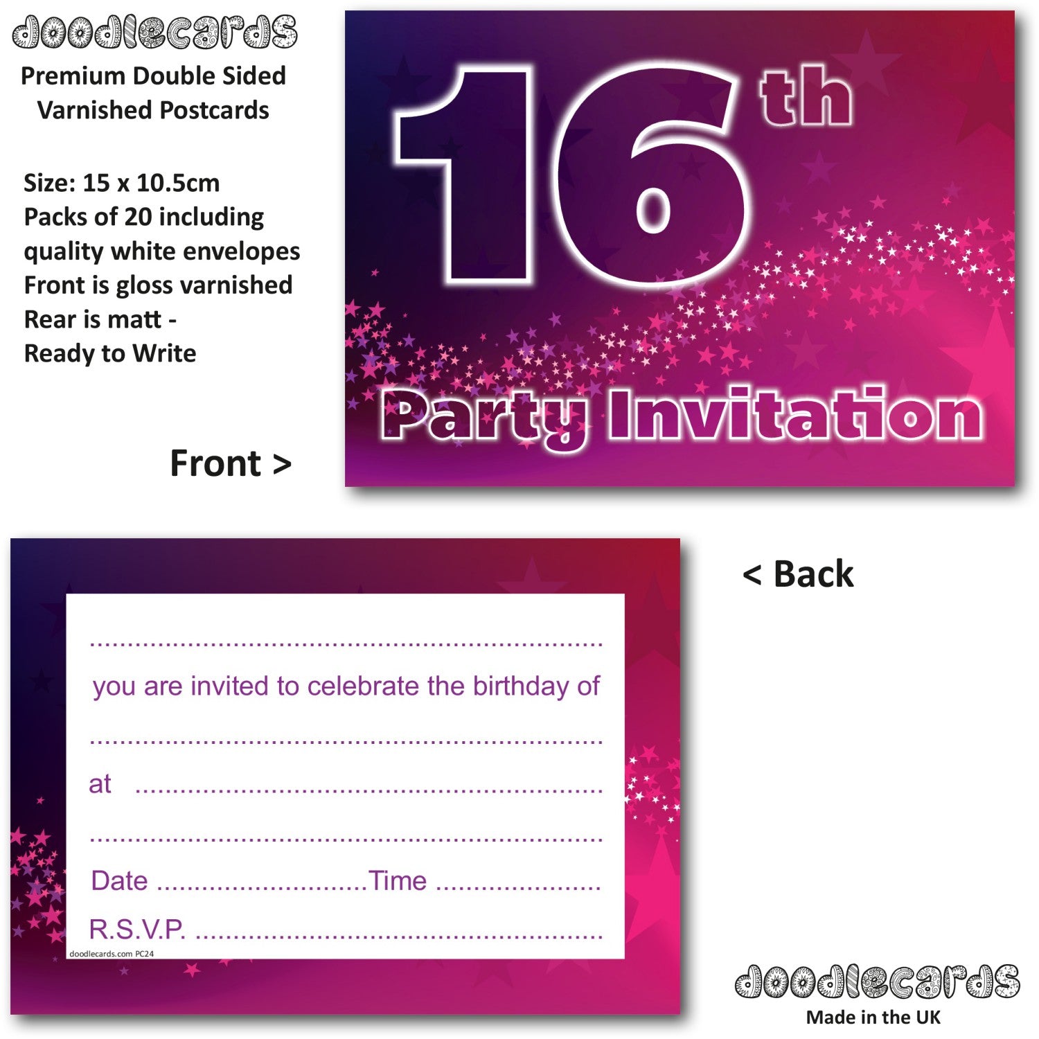 16th Birthday Party Invitations Age 16 Female Womens Girls Pack of 20 Invites