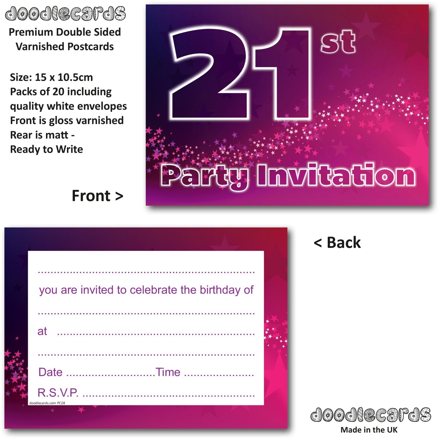 21st Birthday Party Invitations Age 21 Female Womens Pack of 20 Invites & Envs