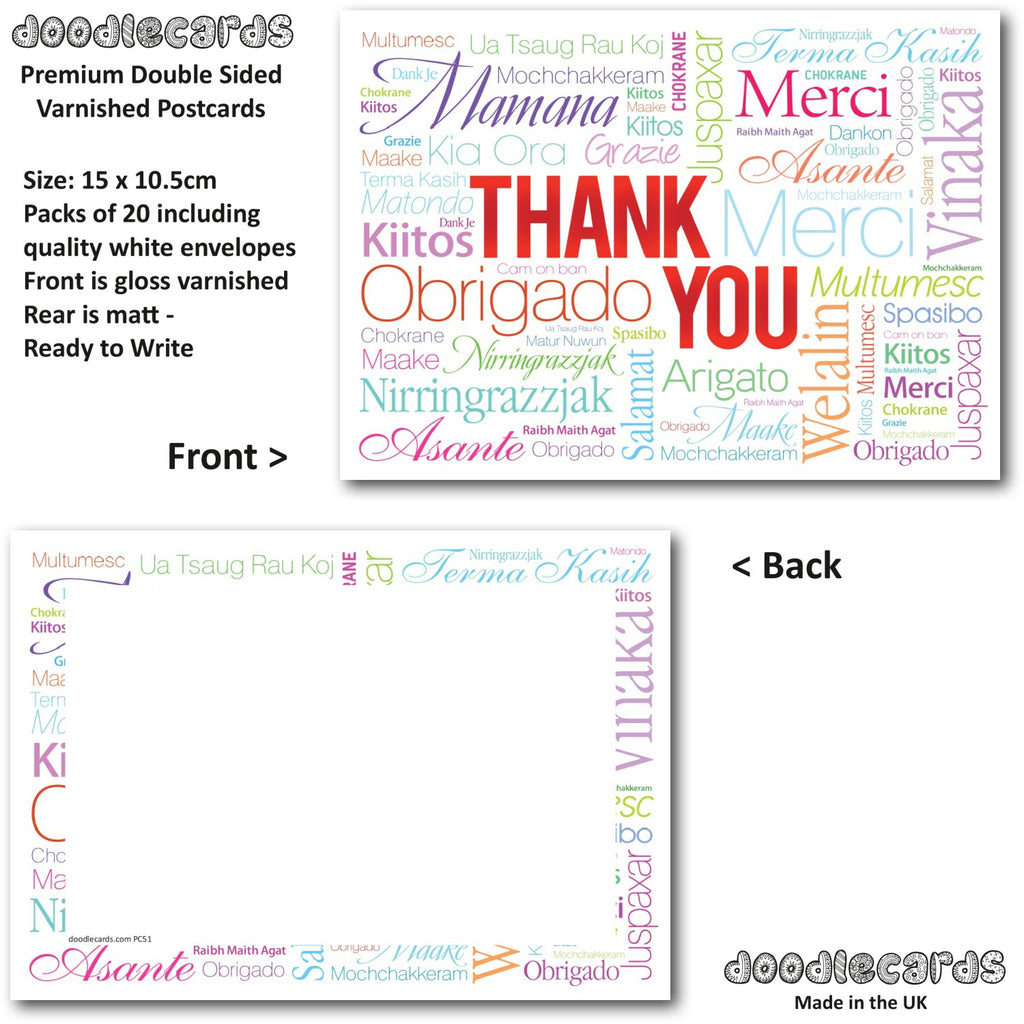 Thank You Cards Thankyou Postcards Languages Pack of 20 Cards & Envelopes