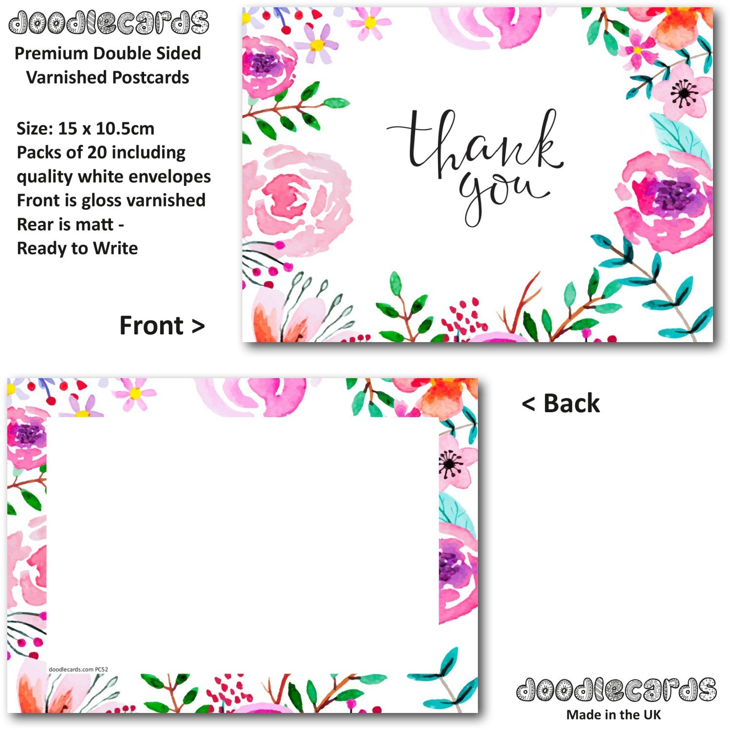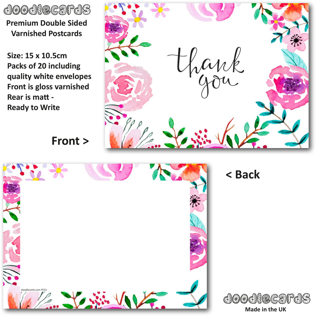 Thank You Cards Thankyou Floral Female Womens Pack of 20 Cards & Envelopes