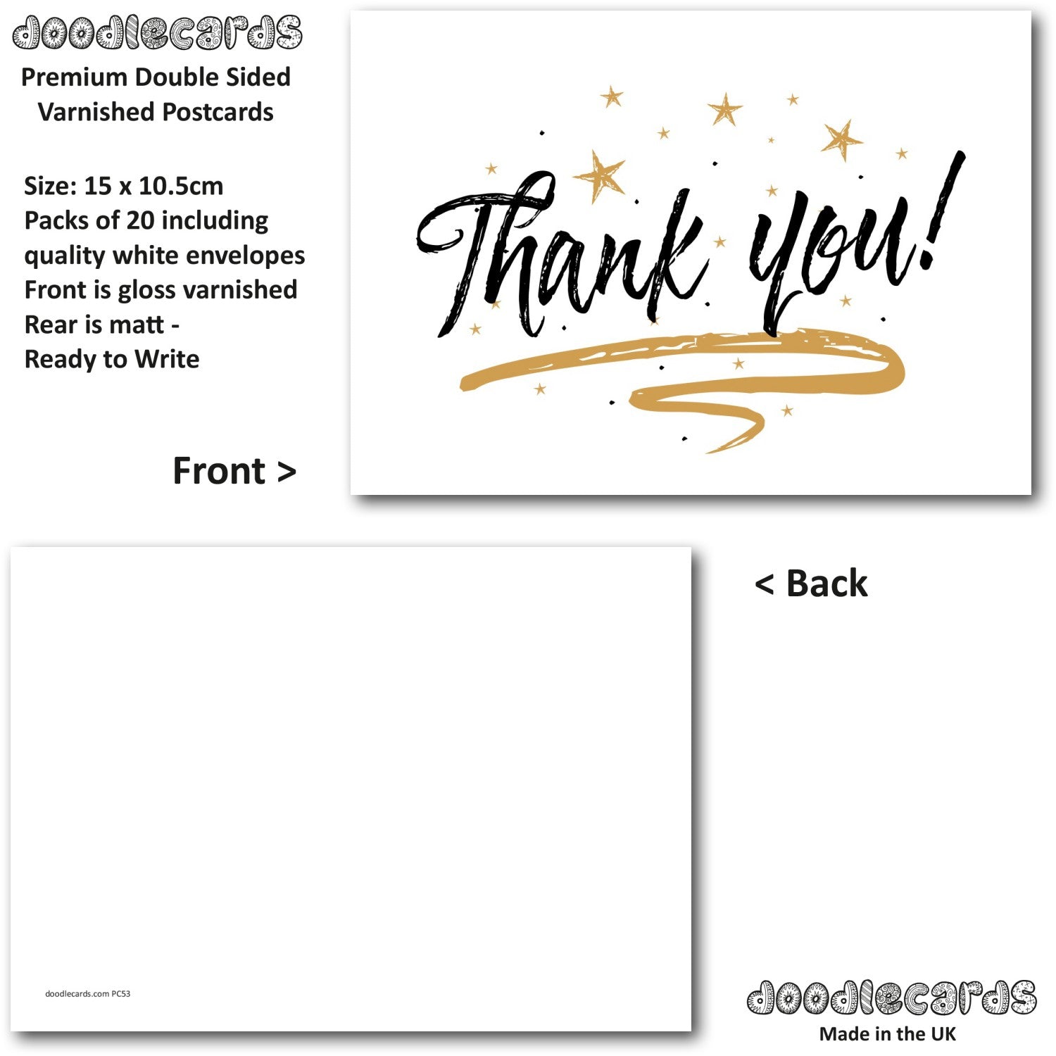 Thank You Cards Thankyou Postcards Black & Gold Pack of 20 Cards & Envelopes