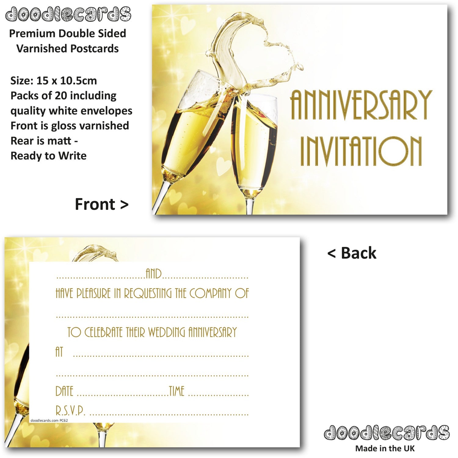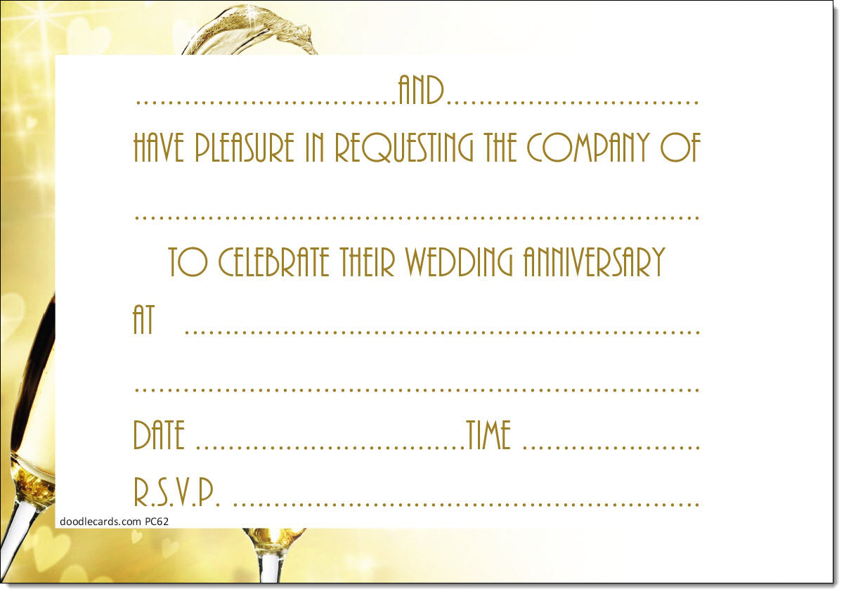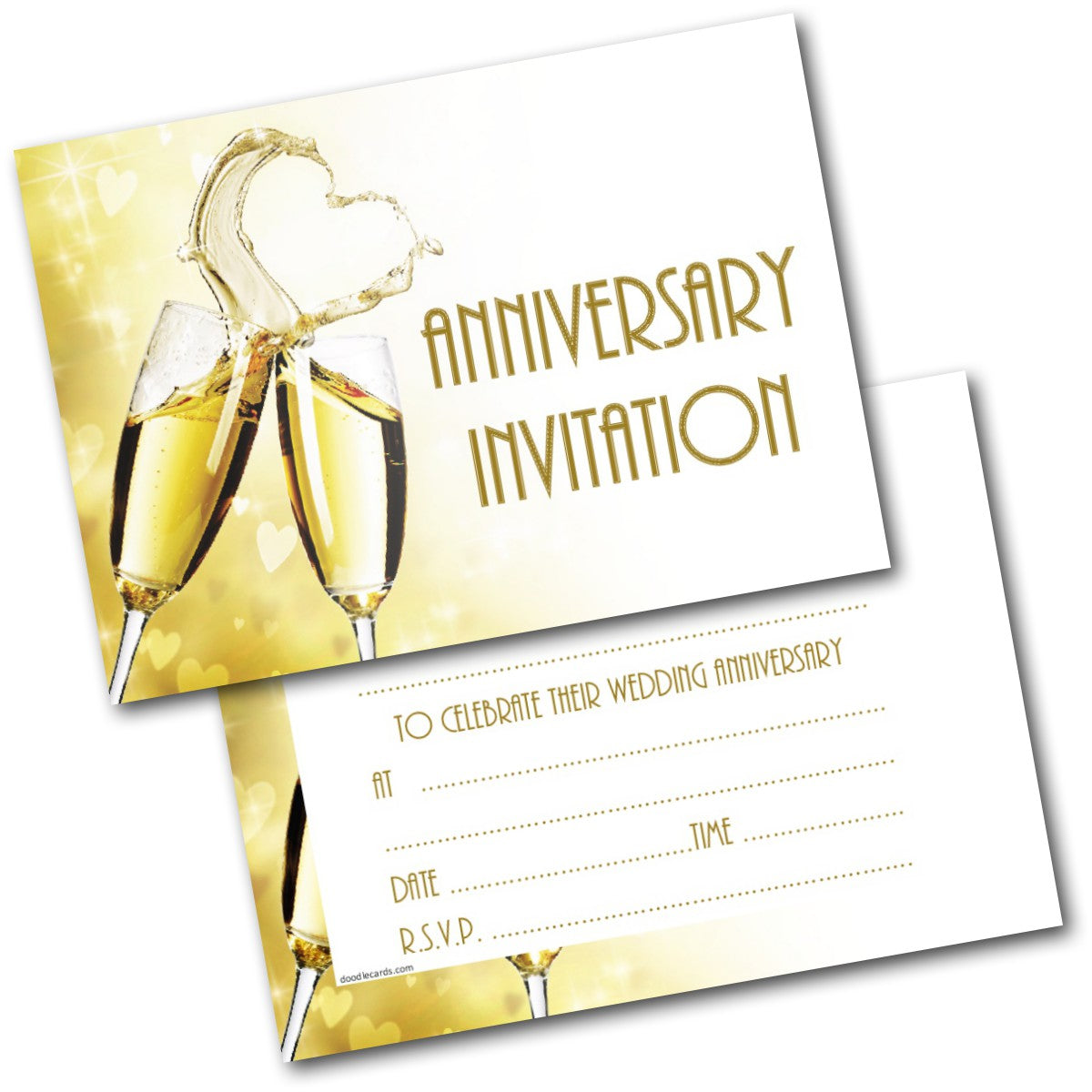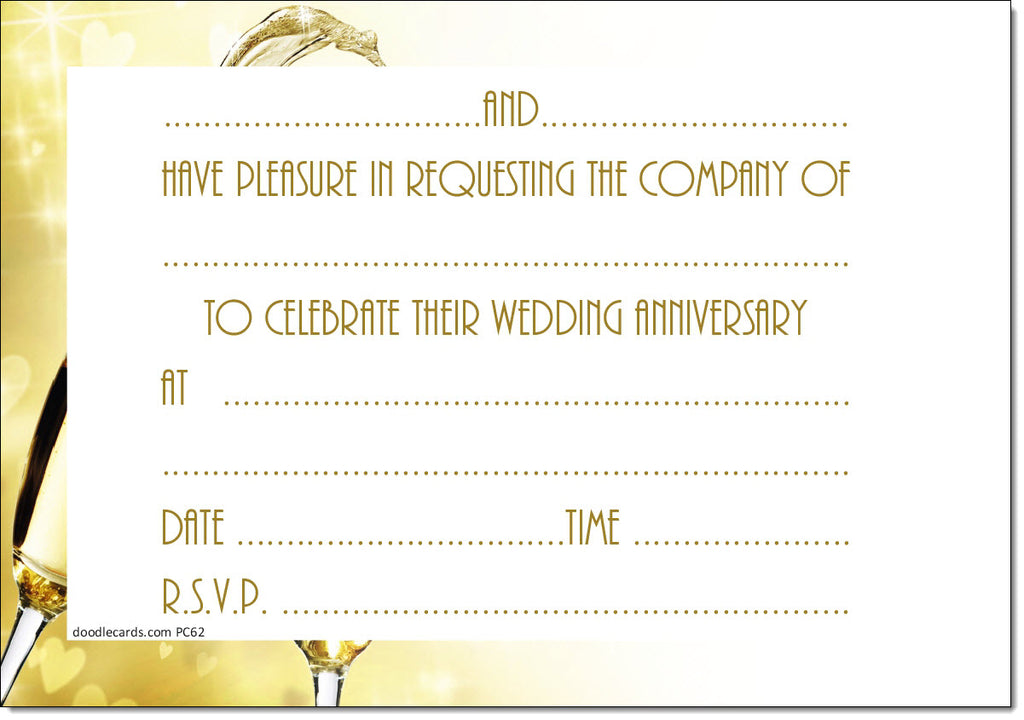 Anniversary Invitations Wedding Heart Champagne Pack of 20 Invites & Envelopes