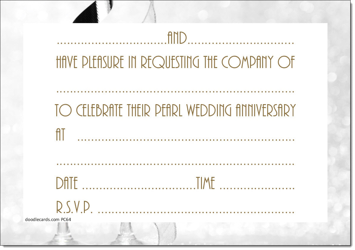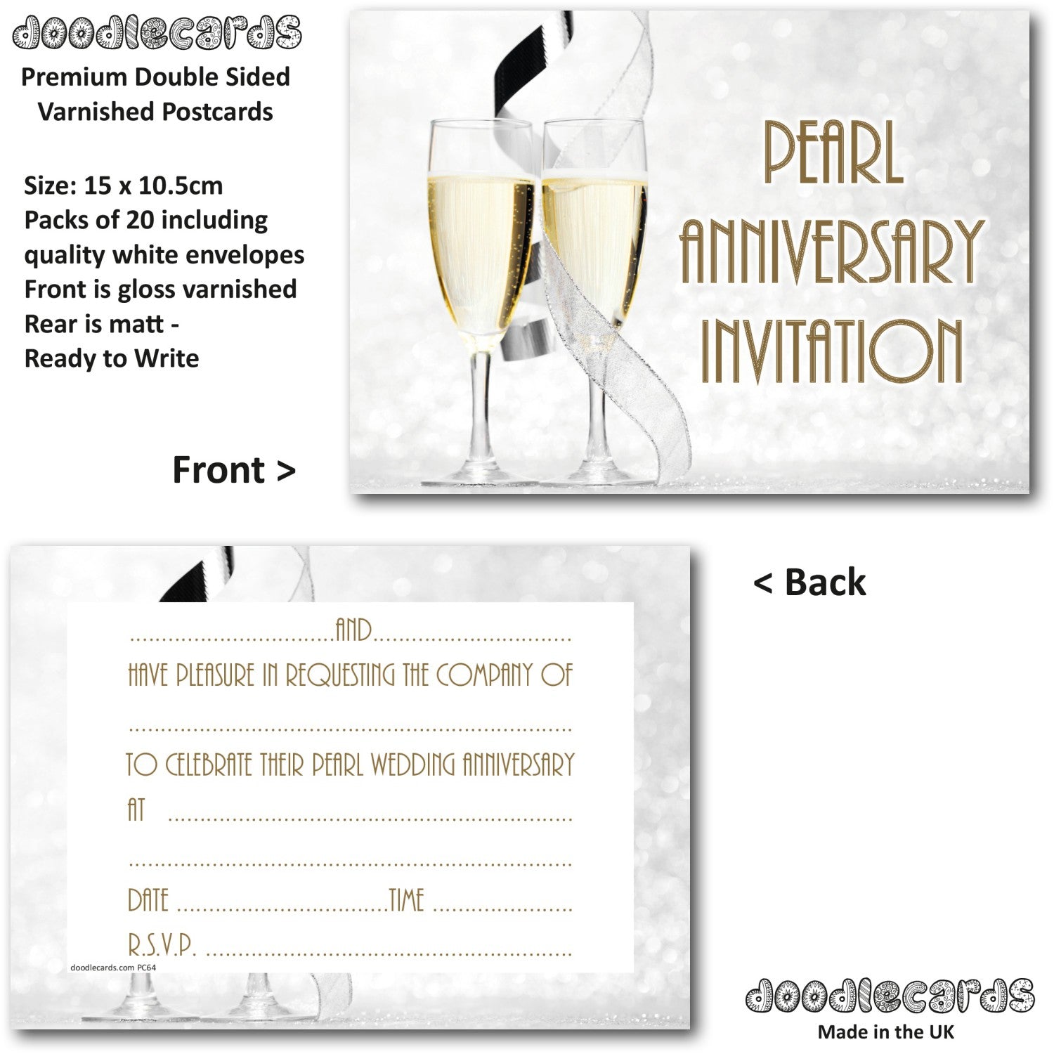 Pearl Wedding Anniversary Invitations 30th Pack of 20 Invites and Envelopes
