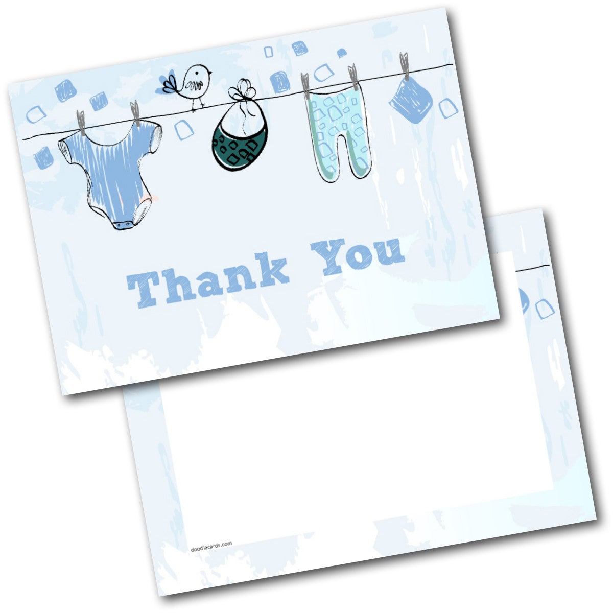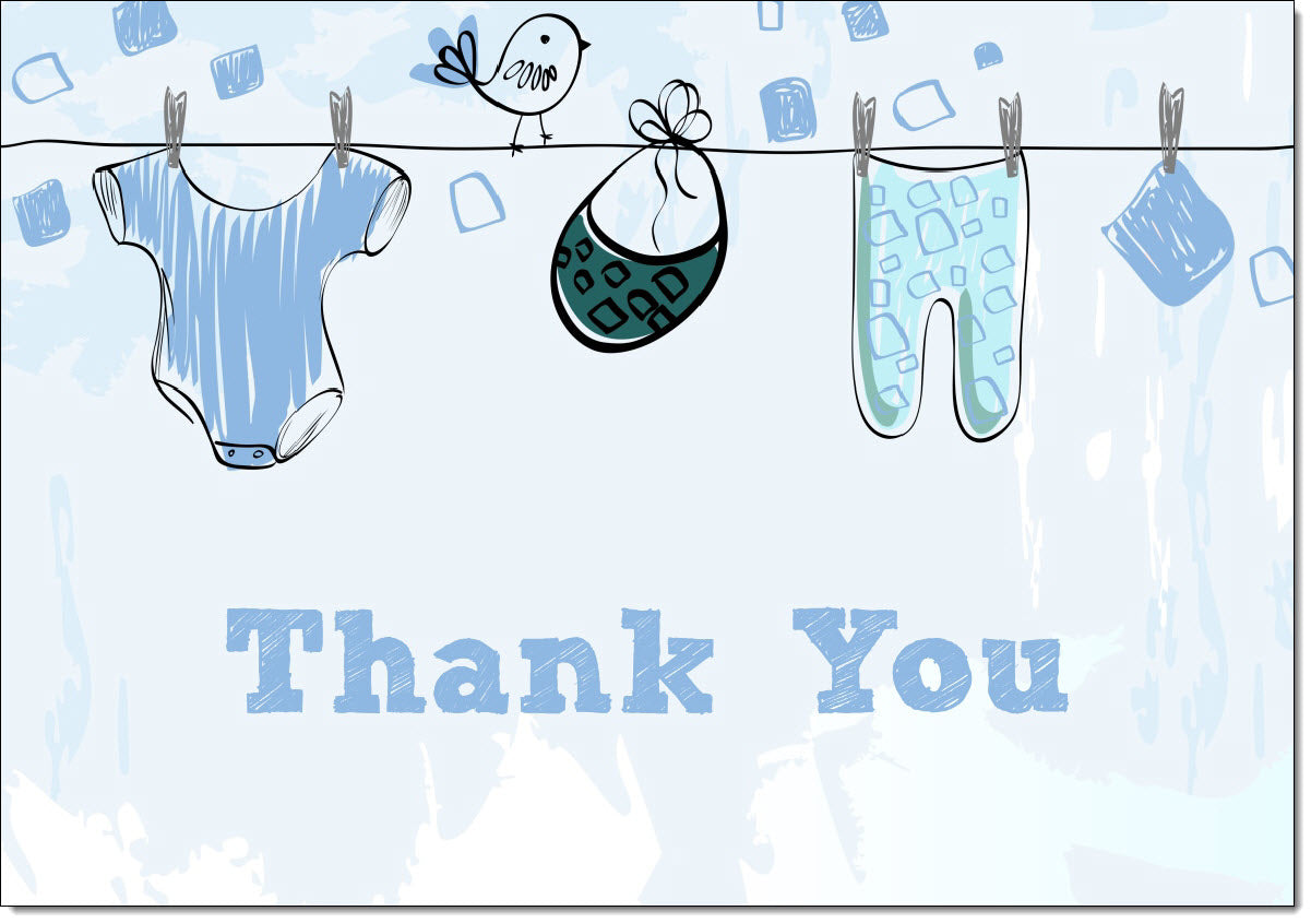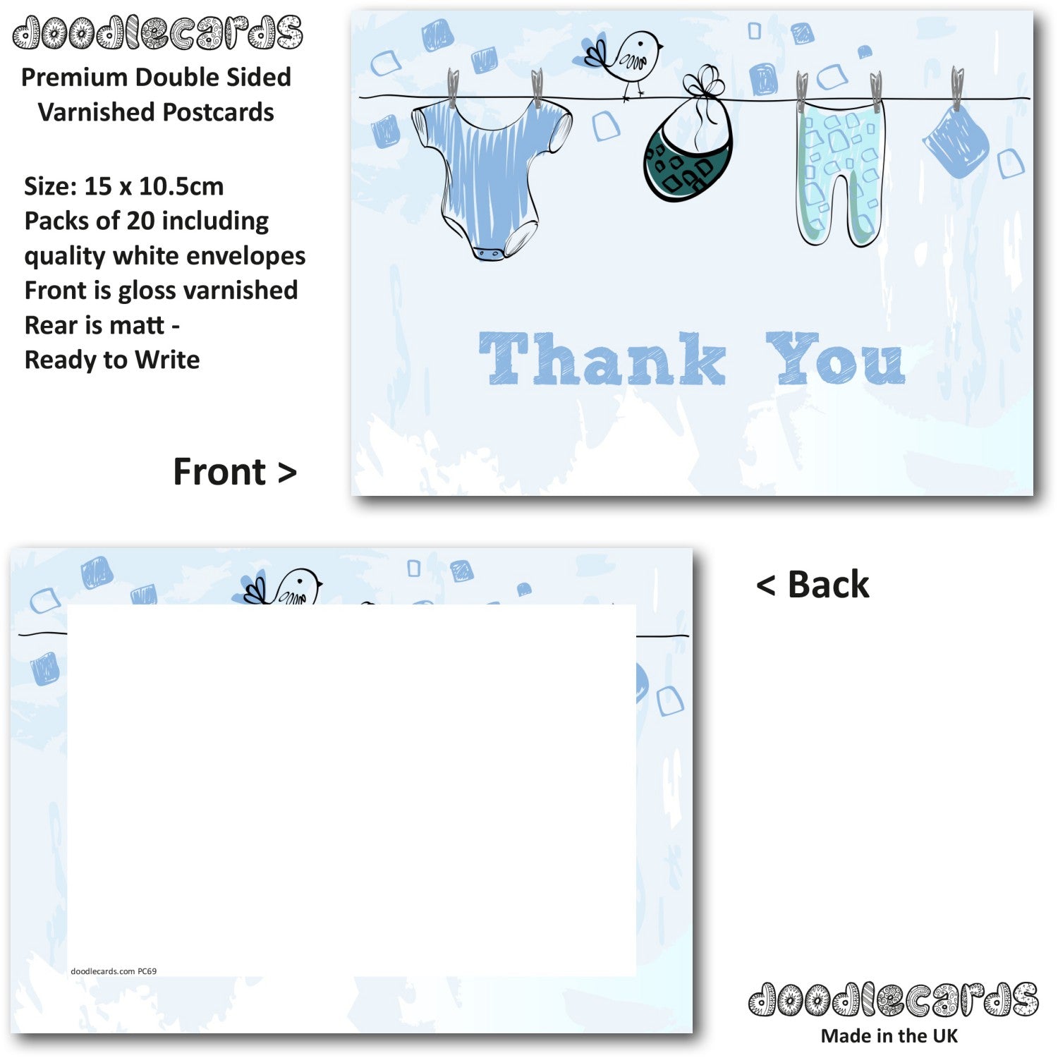 Thank You Baby Gift Thankyou Clothes Blue Boys Male Pack of 20 Cards & Envelopes