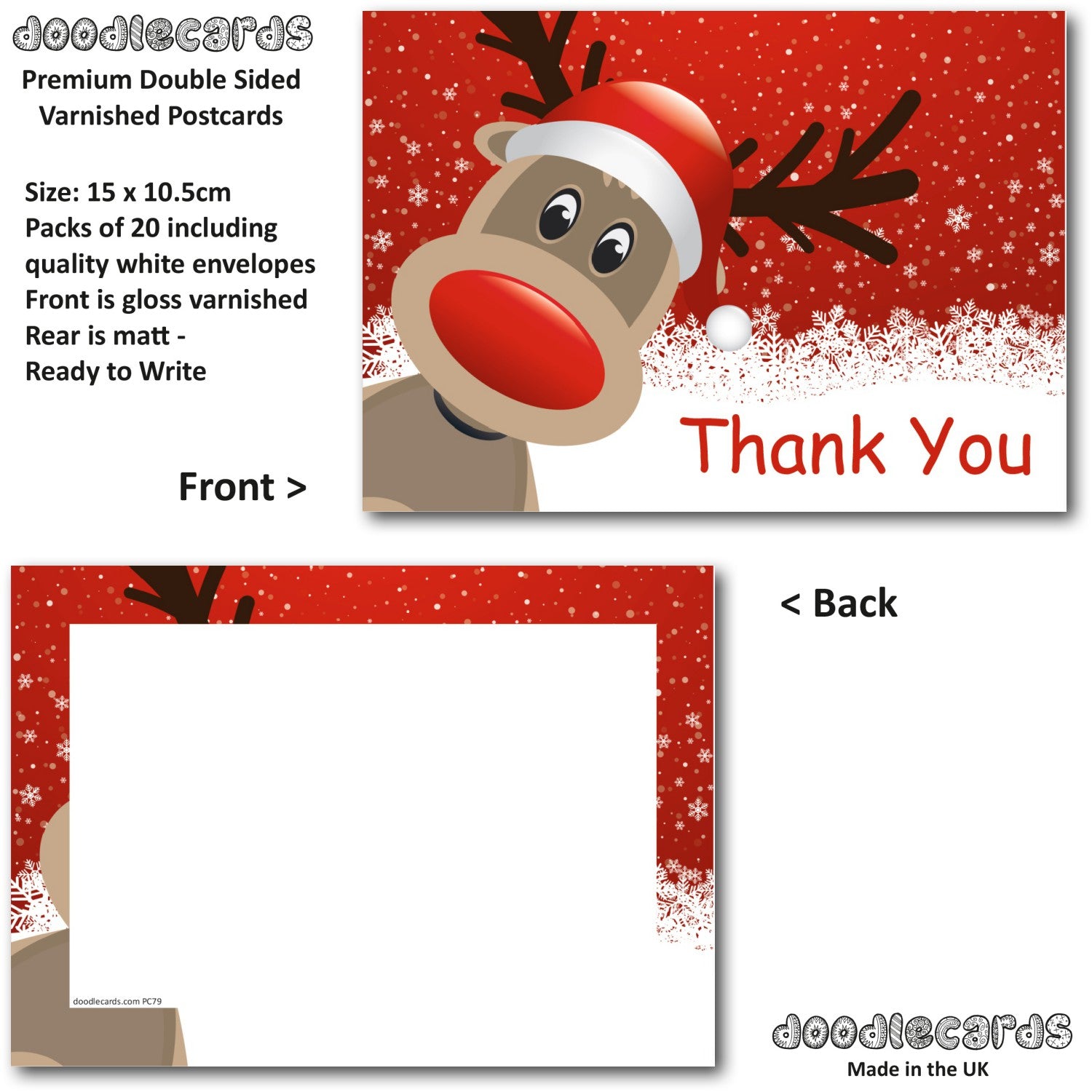 Christmas Thank You Cards Thankyou Red Rudolph Pack of 20 Cards & Envelopes