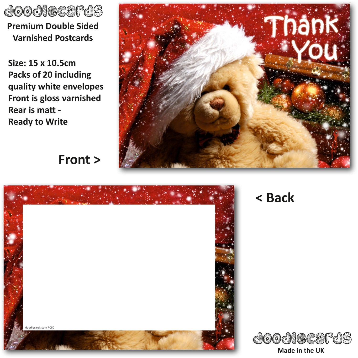 Christmas Thank You Cards Thankyou Postcards Teddy Pack of 20 Cards & Envelopes