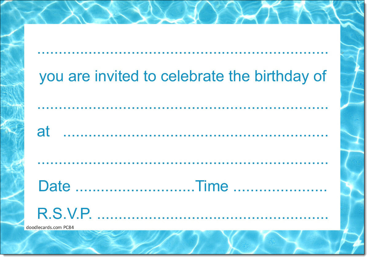 Birthday Party Invitations Pool Party Pack of 20 Invites & Envelopes