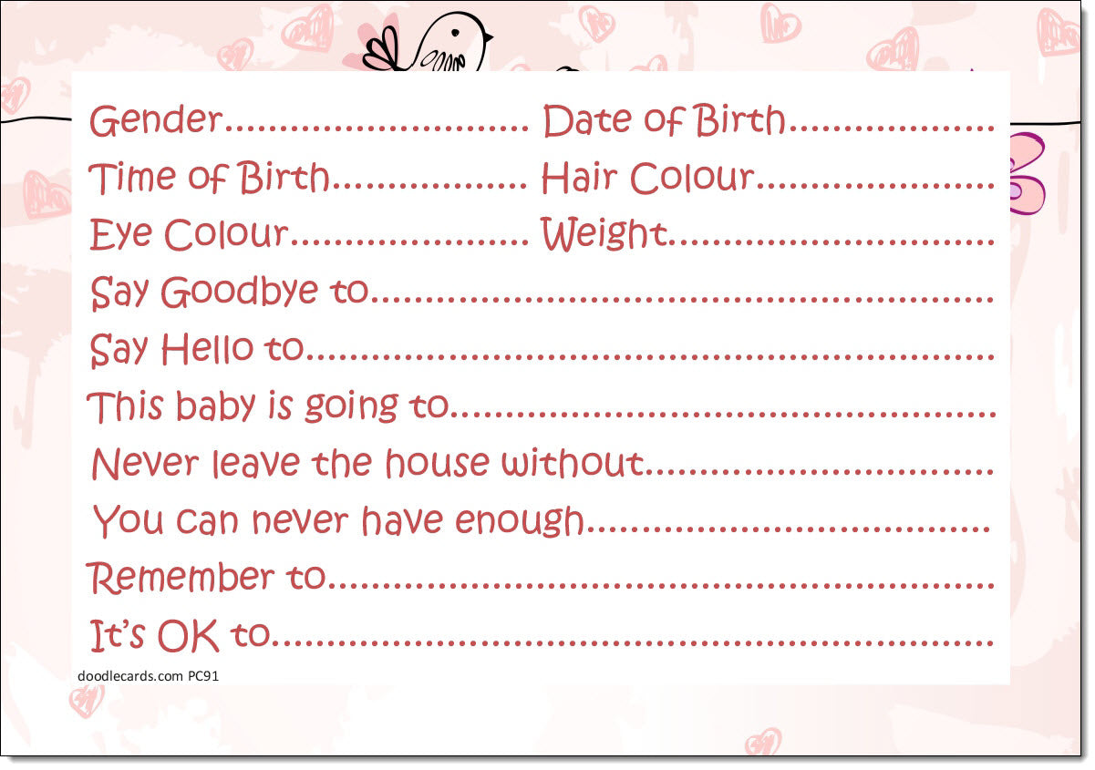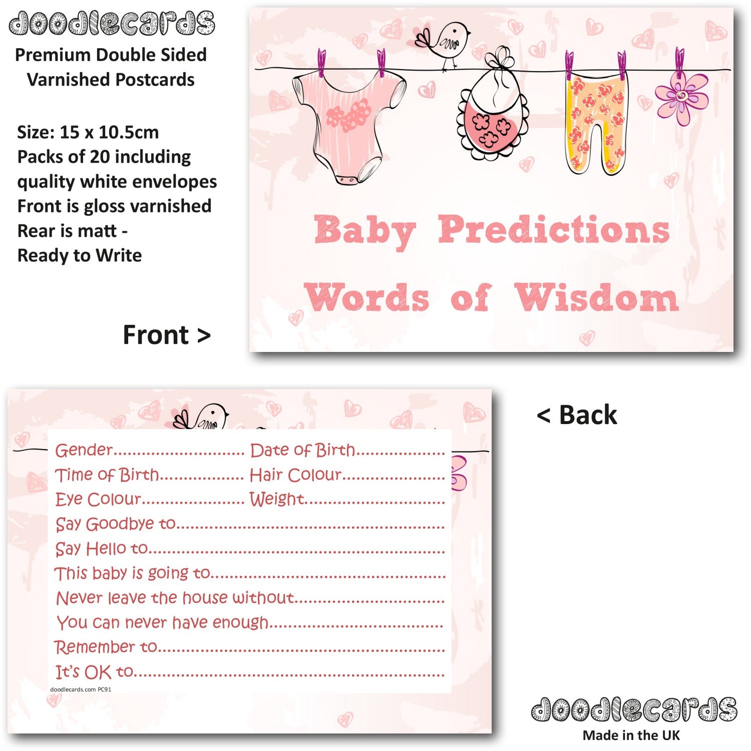 Baby Shower Prediction Game Cards Clothes Pink Girl Pack of 20 Cards & Envelopes