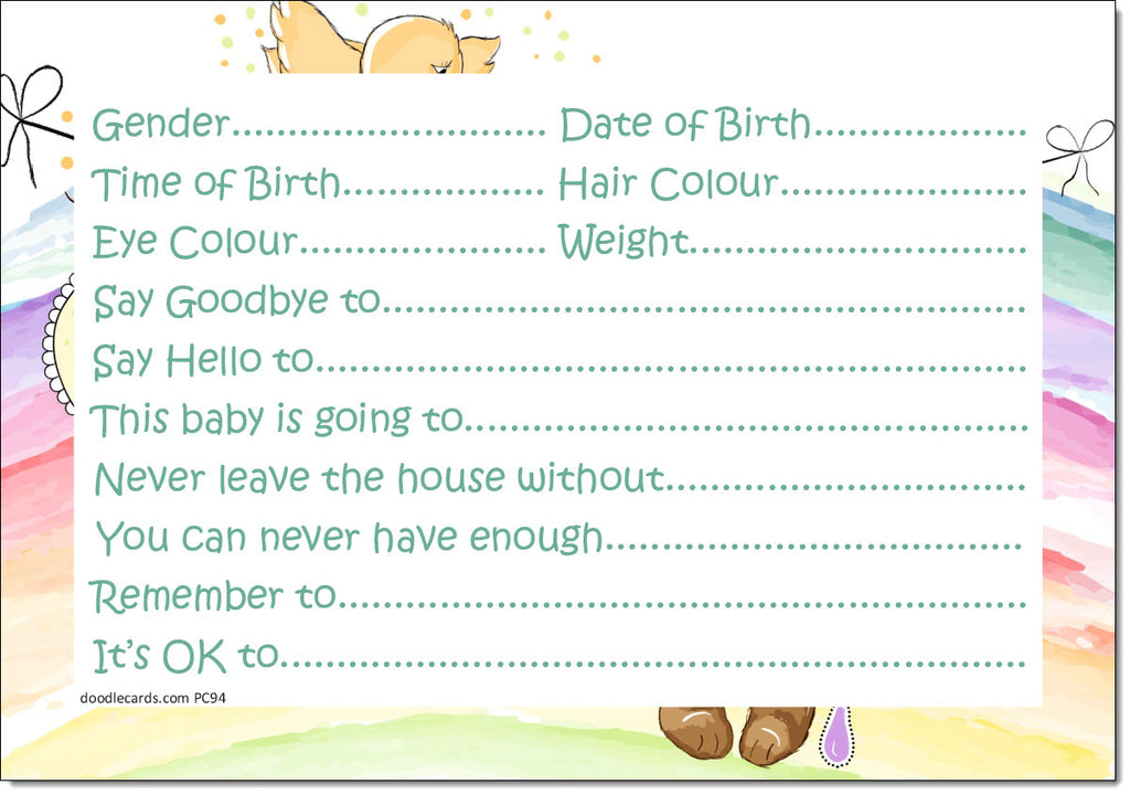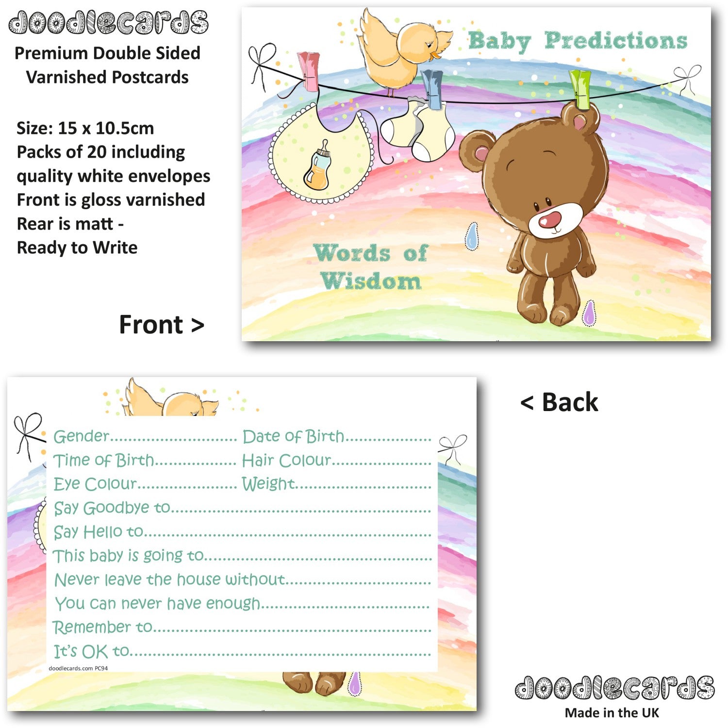 Baby Shower Prediction Game Cards Clothes Generic Unisex Pack of 20 Cards & Env