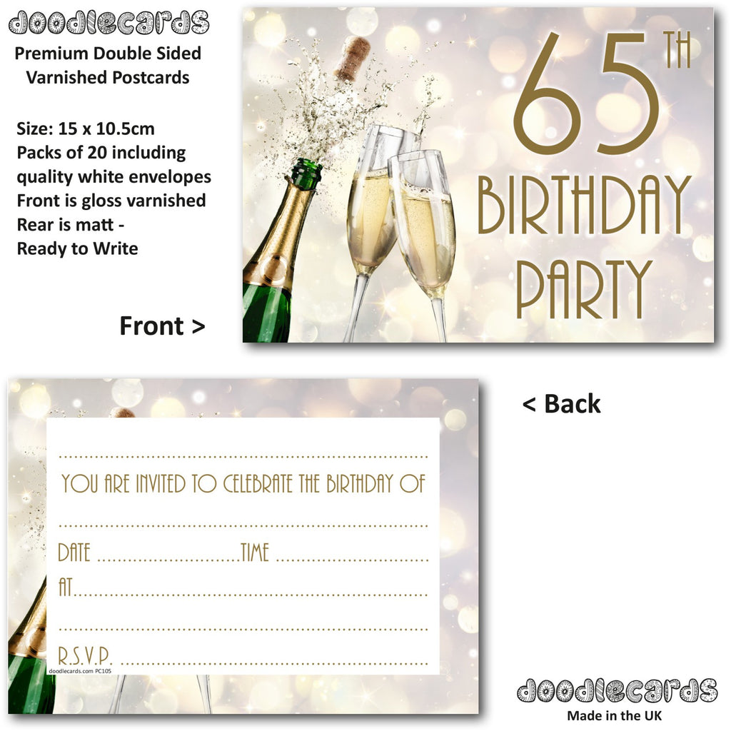 65th Birthday Party Invitations Age 65 Male Mens Female Womens Pack 20 Invites