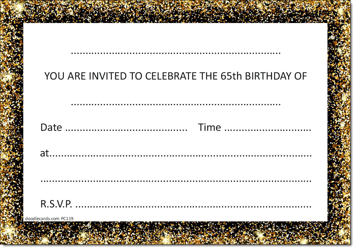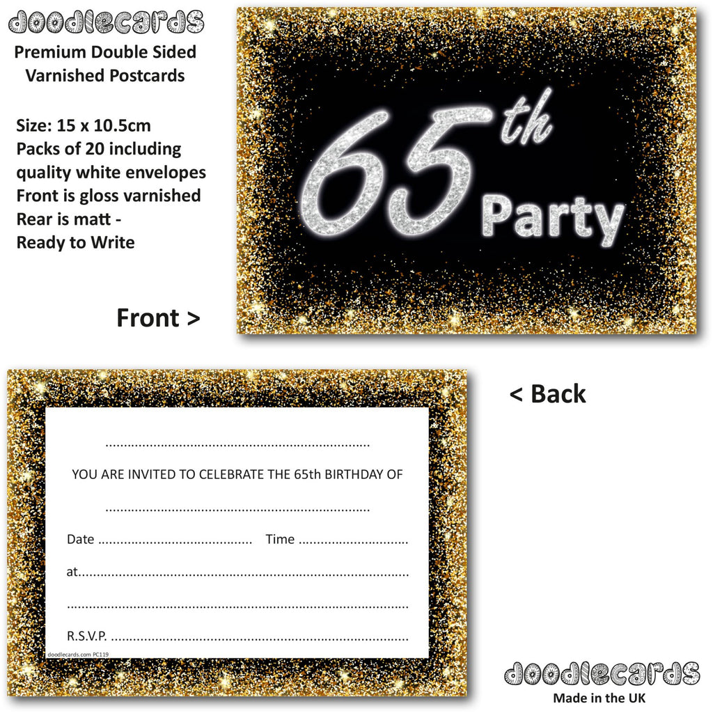 65th Birthday Party Invitations Age 65 Male Mens Female Womens Pack 20 Invites