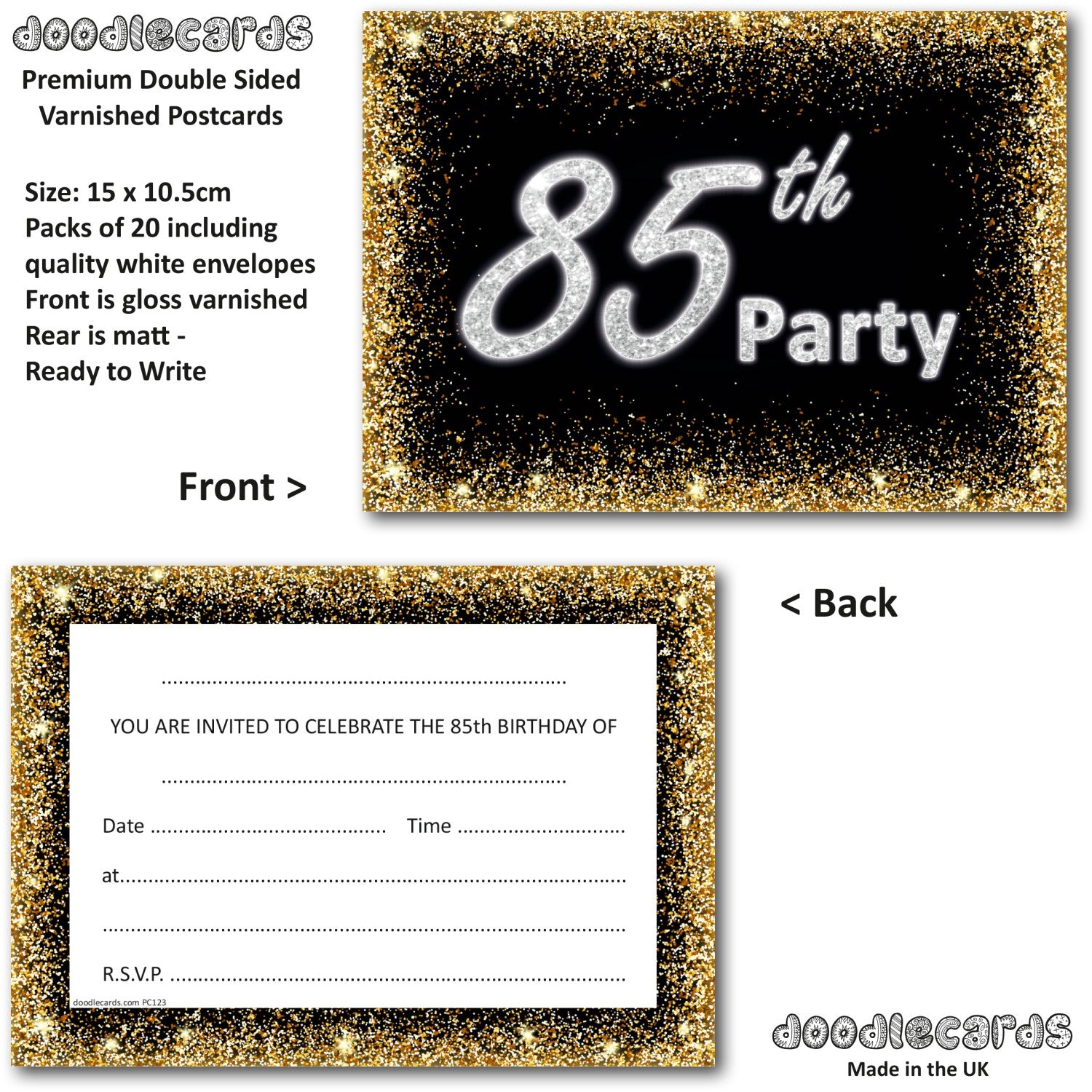 85th Birthday Party Invitations Age 85 Male Mens Female Womens Pack 20 Invites