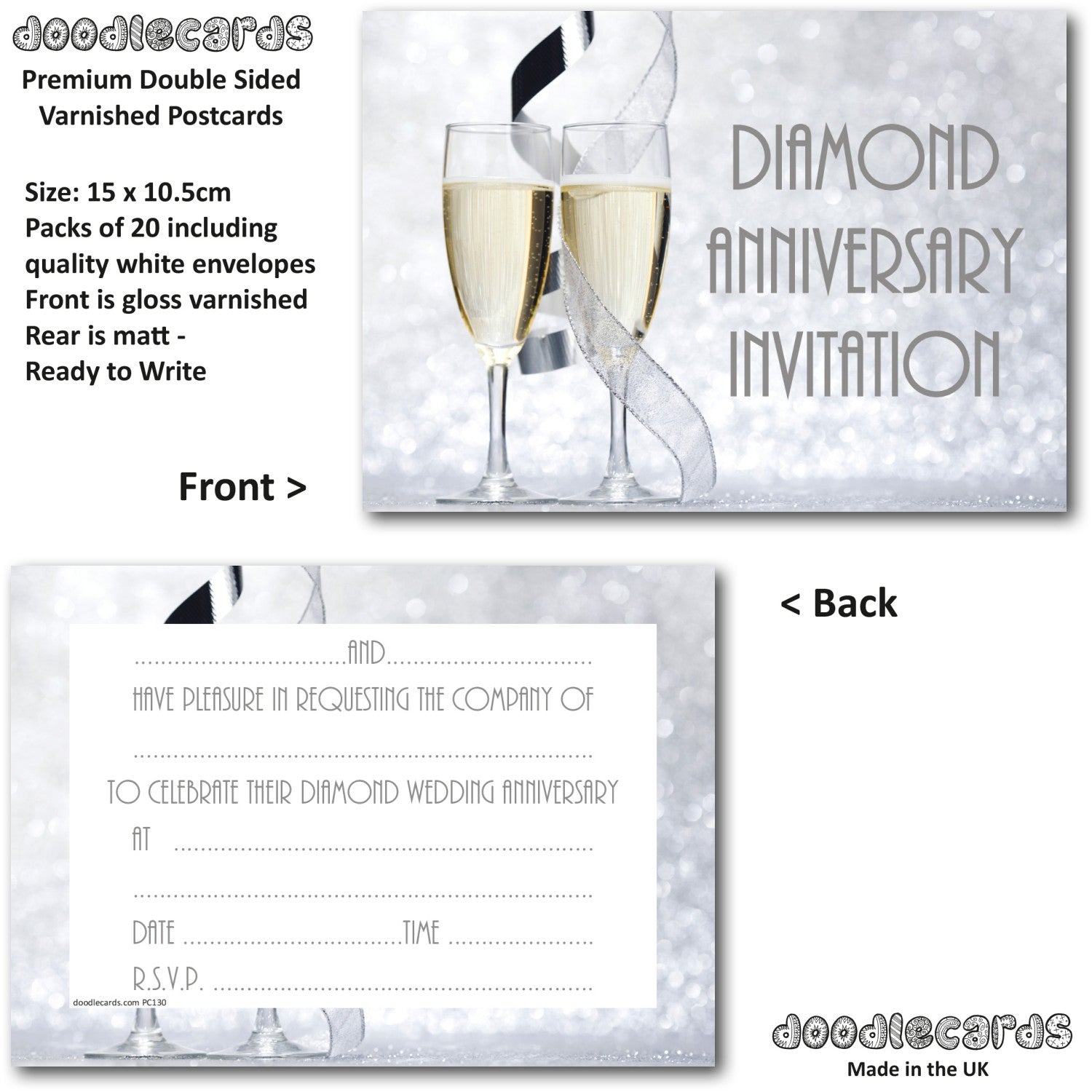 Diamond Wedding Anniversary Invitations 60th Pack of 20 Invites and Envelopes