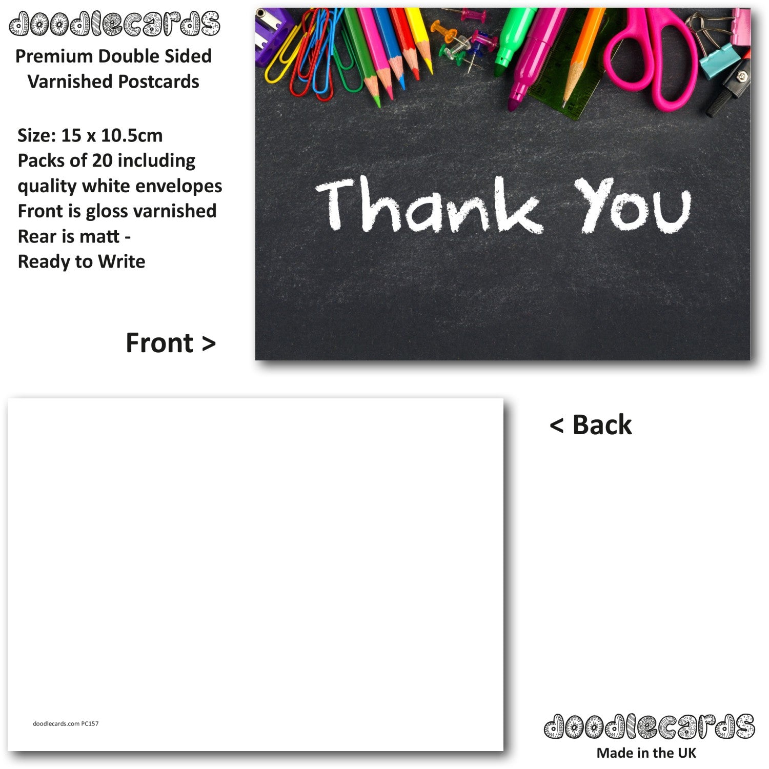 Thank You Cards Thankyou Postcards Pencils Teacher Pack of 20 Cards & Envelopes