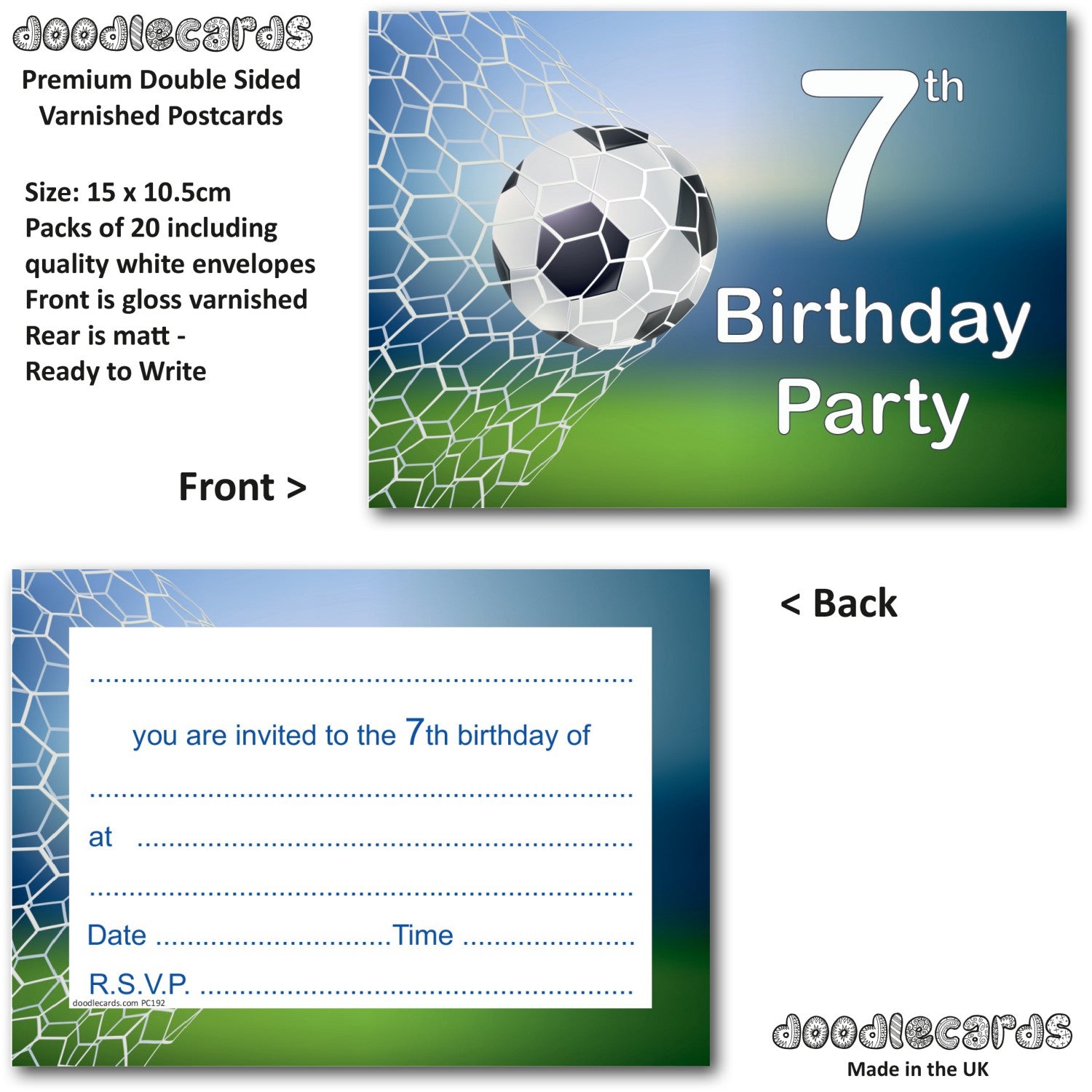 7th Birthday Party Invitations Football 20 Cards and 20 Envelopes