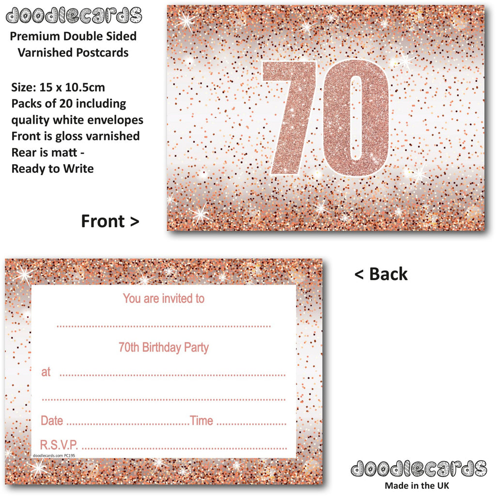 70th Birthday Party Invitations Rose Gold 20 Cards and 20 Envelopes