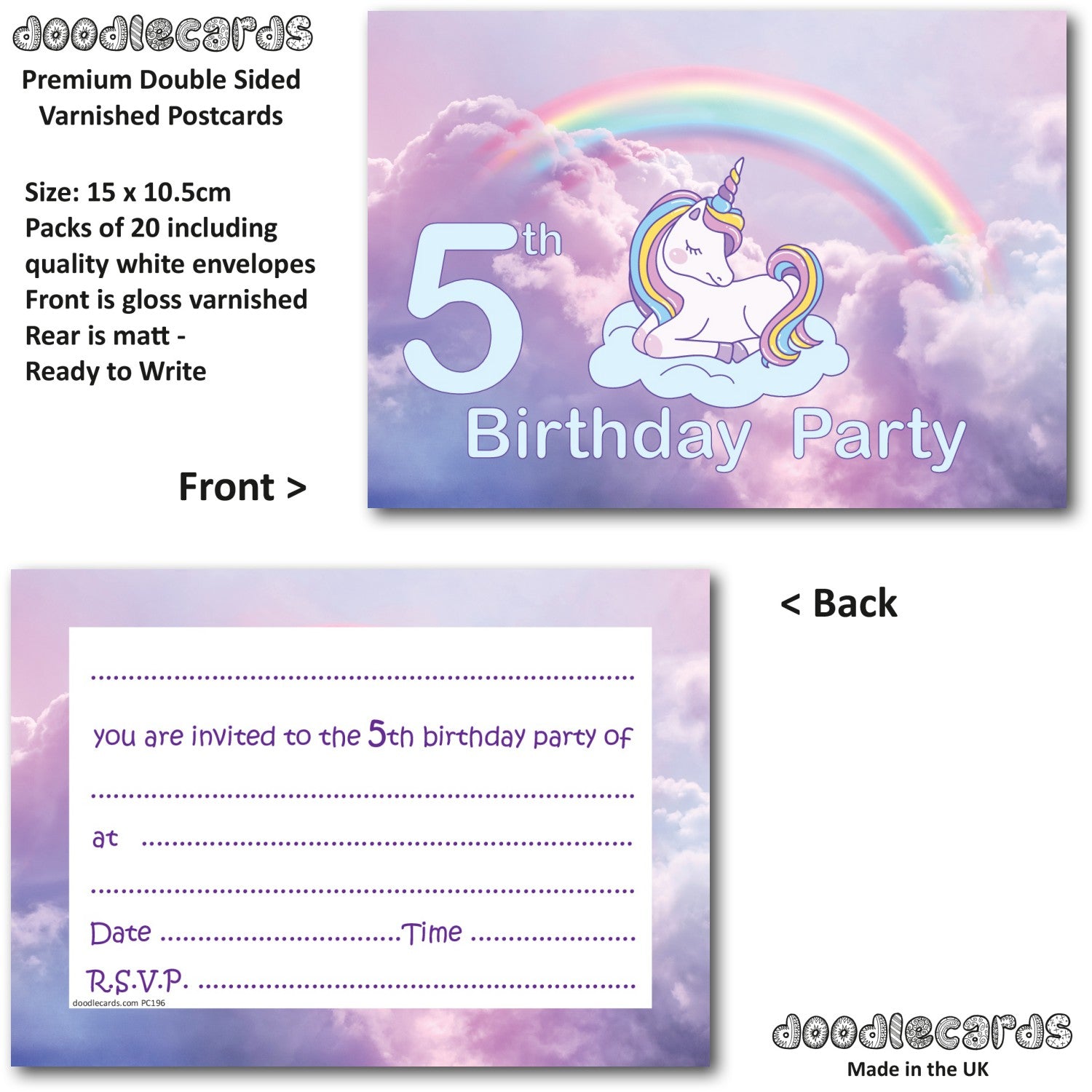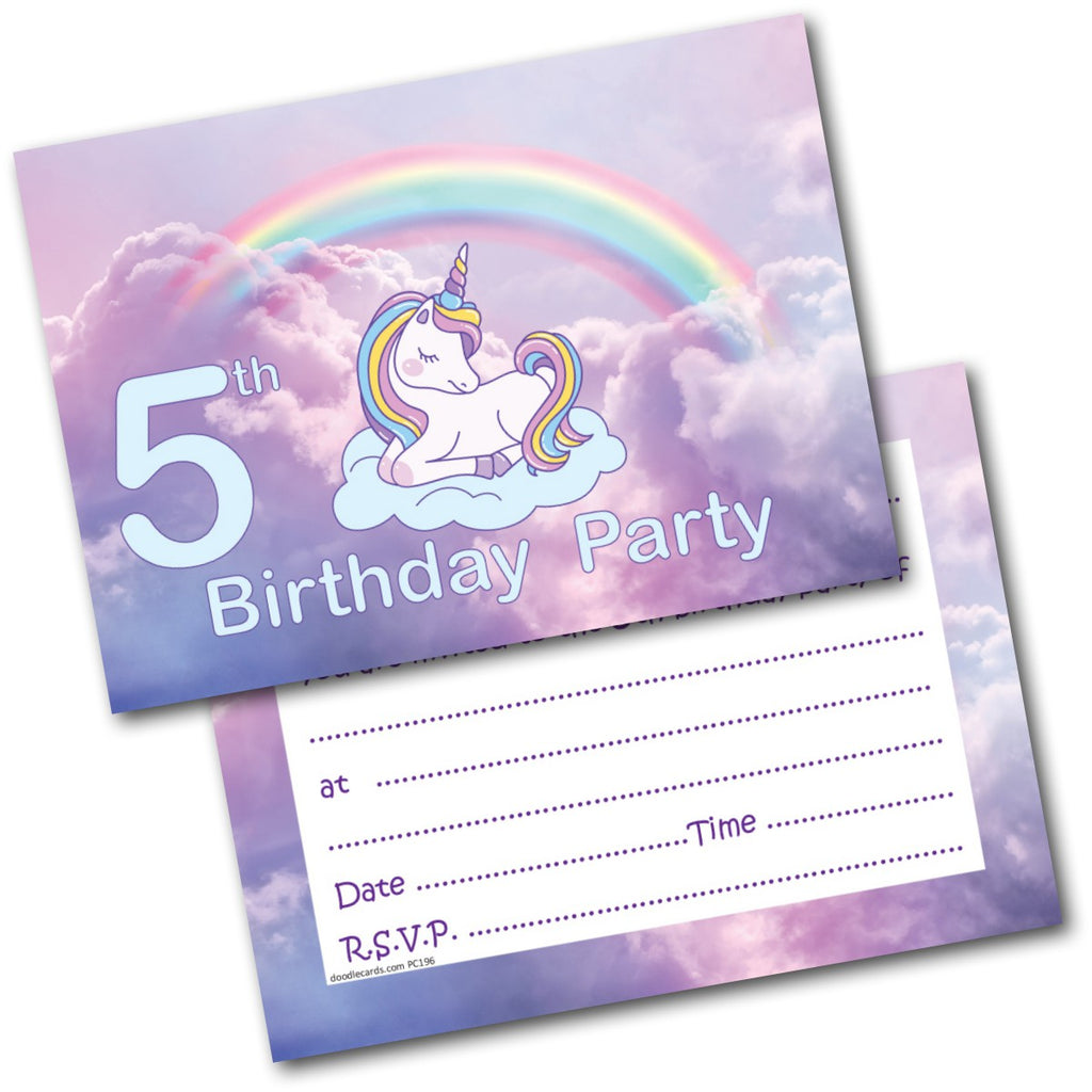 5th Birthday Party Invitations Unicorn 20 Cards and 20 Envelopes