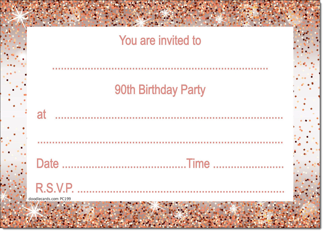 90th Birthday Party Invitations Rose Gold 20 Cards and 20 Envelopes