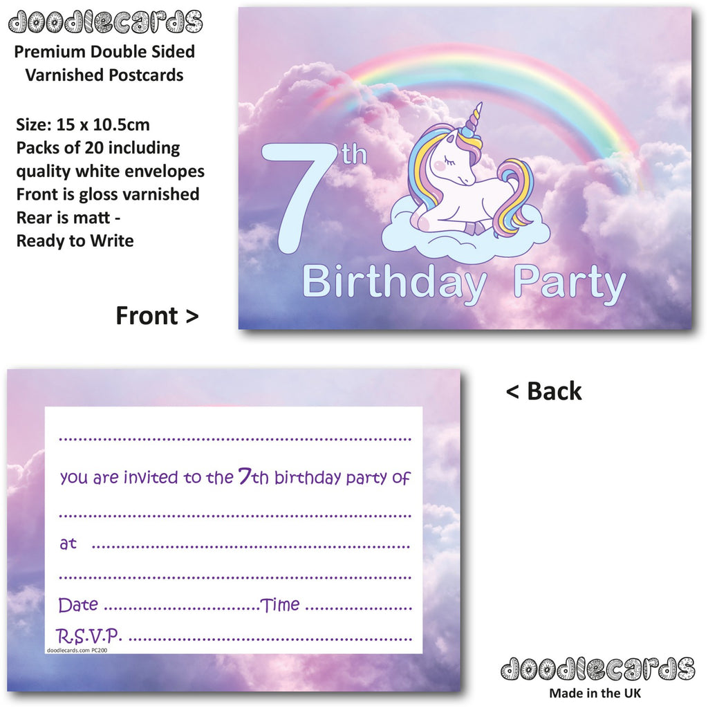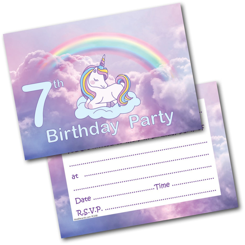 7th Birthday Party Invitations Unicorn 20 Cards and 20 Envelopes