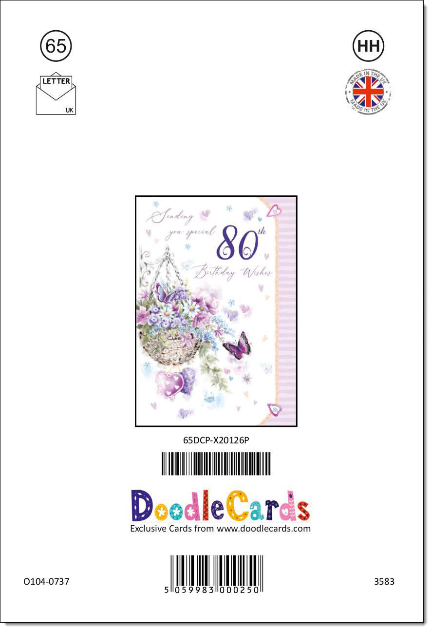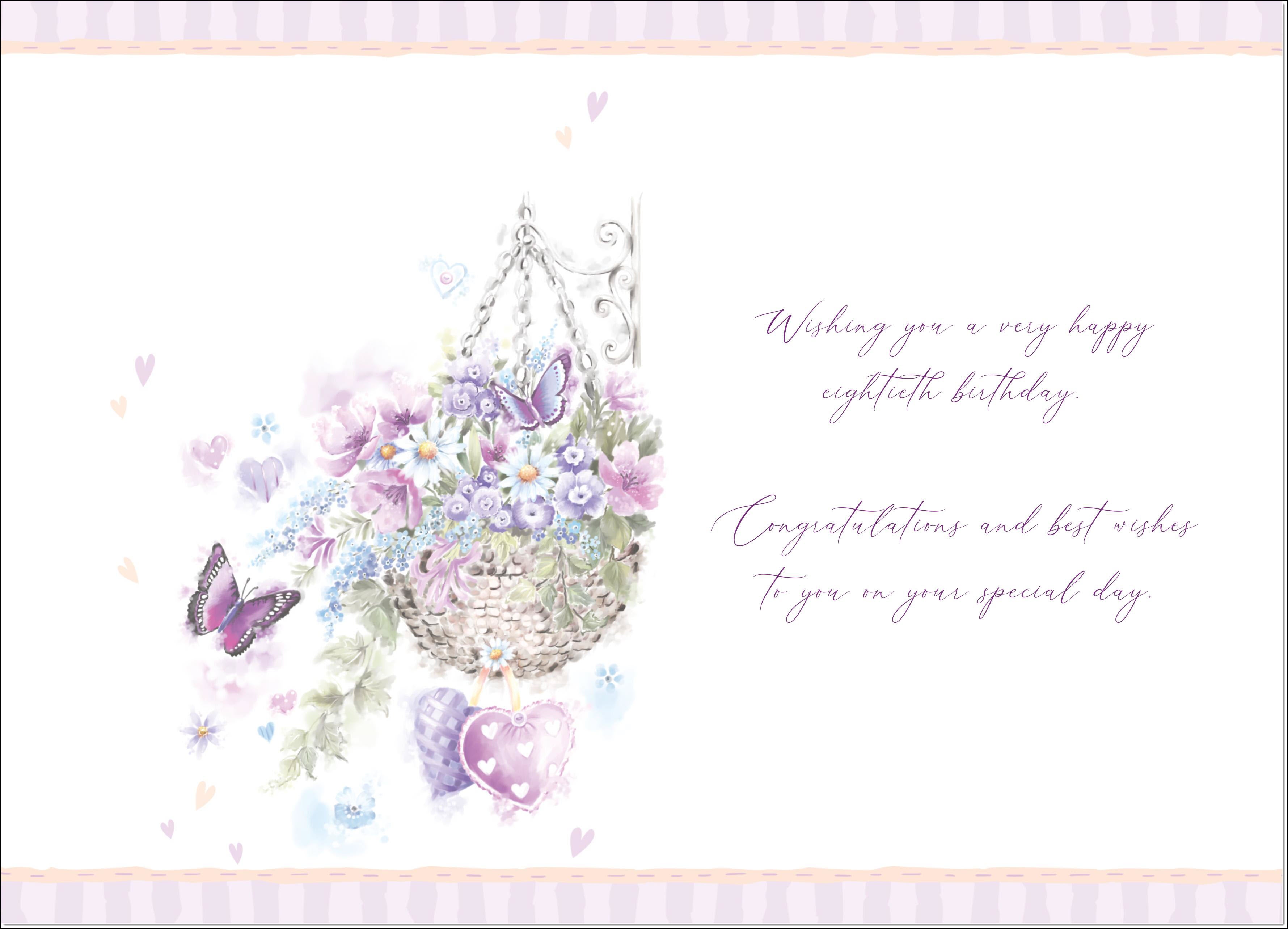 80th Birthday Card Age 80 for Her Purple Hanging Basket