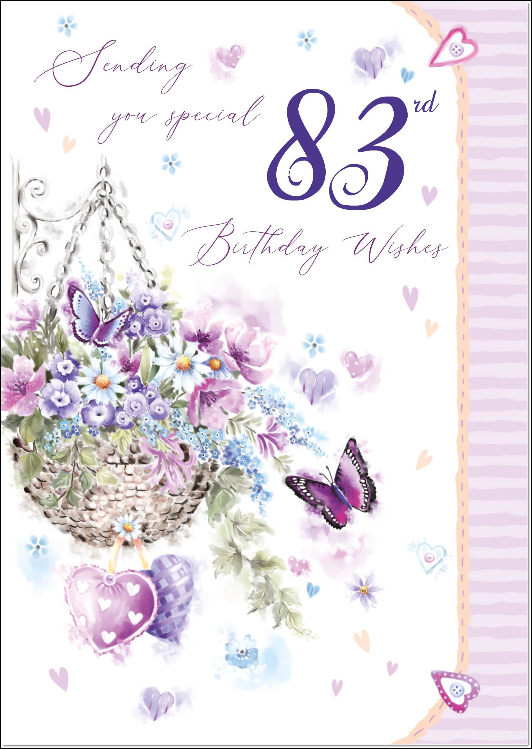 83rd Birthday Card Age 83 for Her Purple Hanging Basket