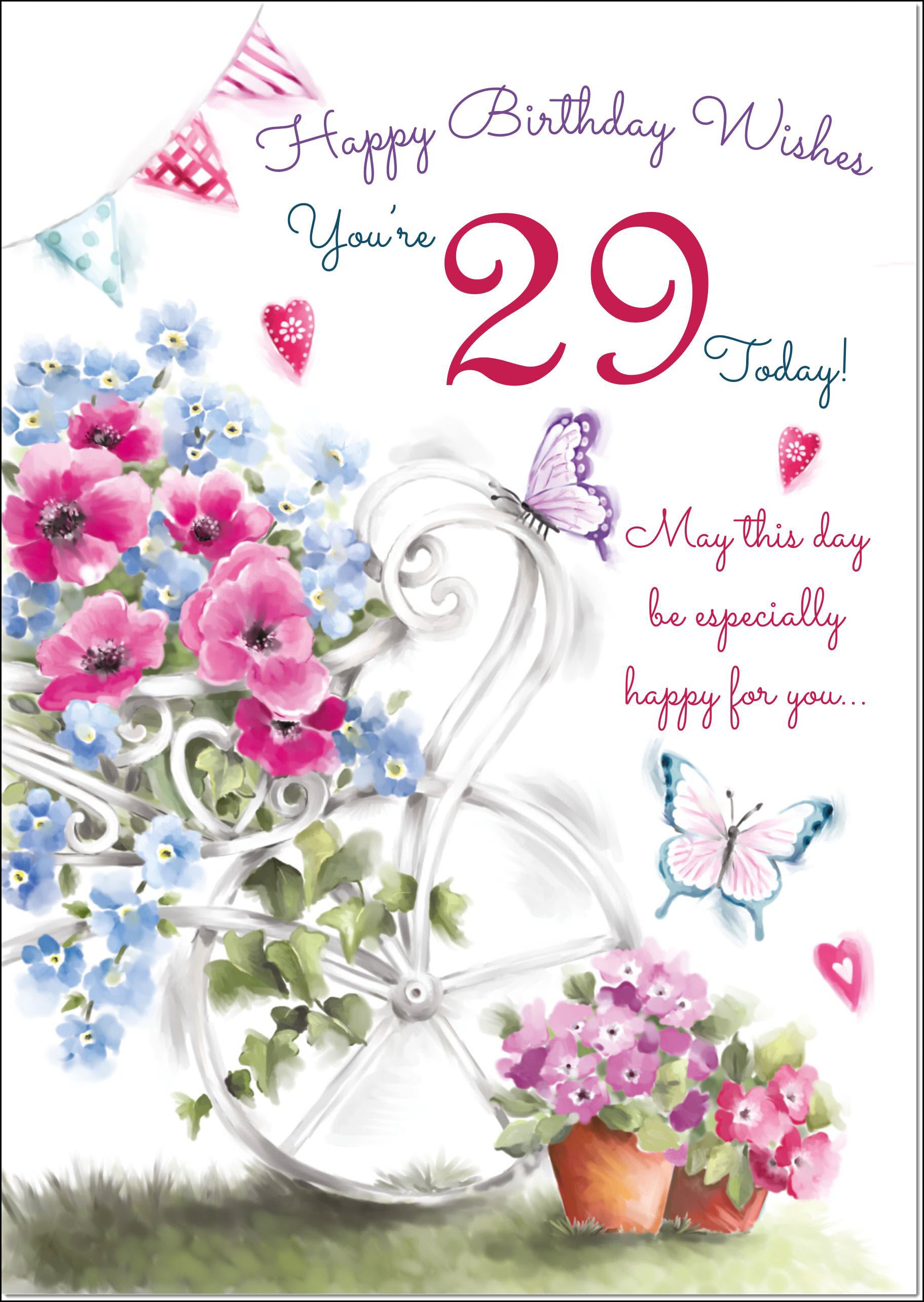 29th Birthday Card Age 29 for Her Garden Wheelbarrow Bouquet