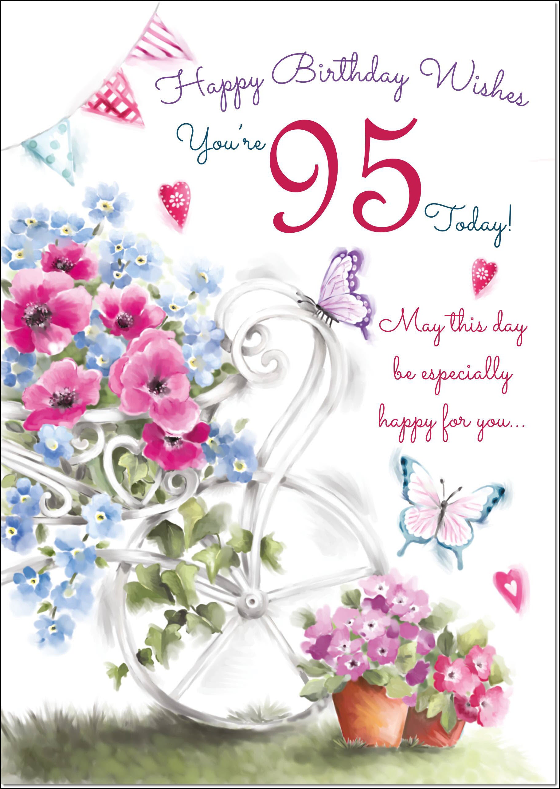 95th Birthday Card Age 95 for Her Garden Wheelbarrow Bouquet