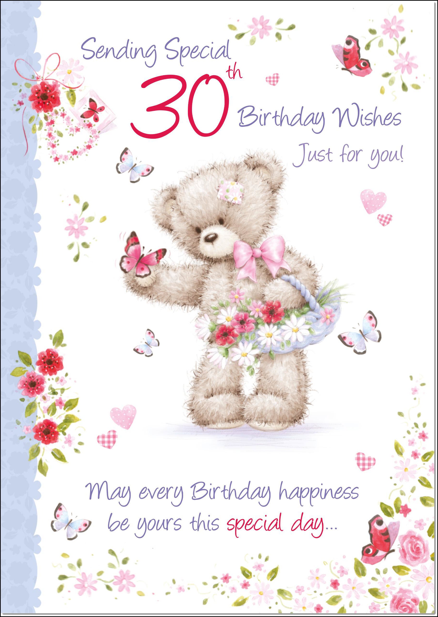 30th Birthday Card Age 30 for Her Cute Teddy's Flowers and Butterflies