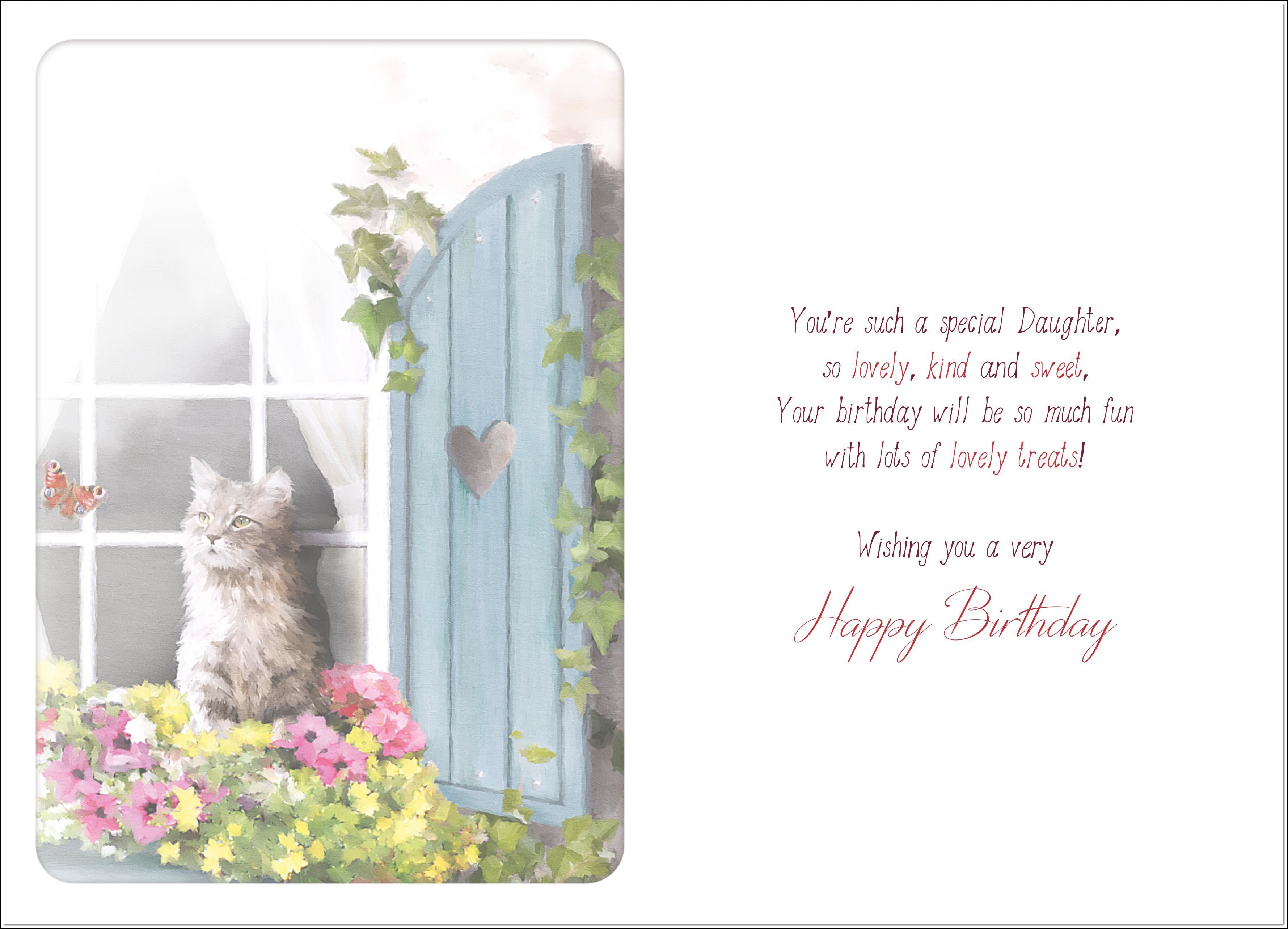 Daughter Birthday Card Windowbox Cat