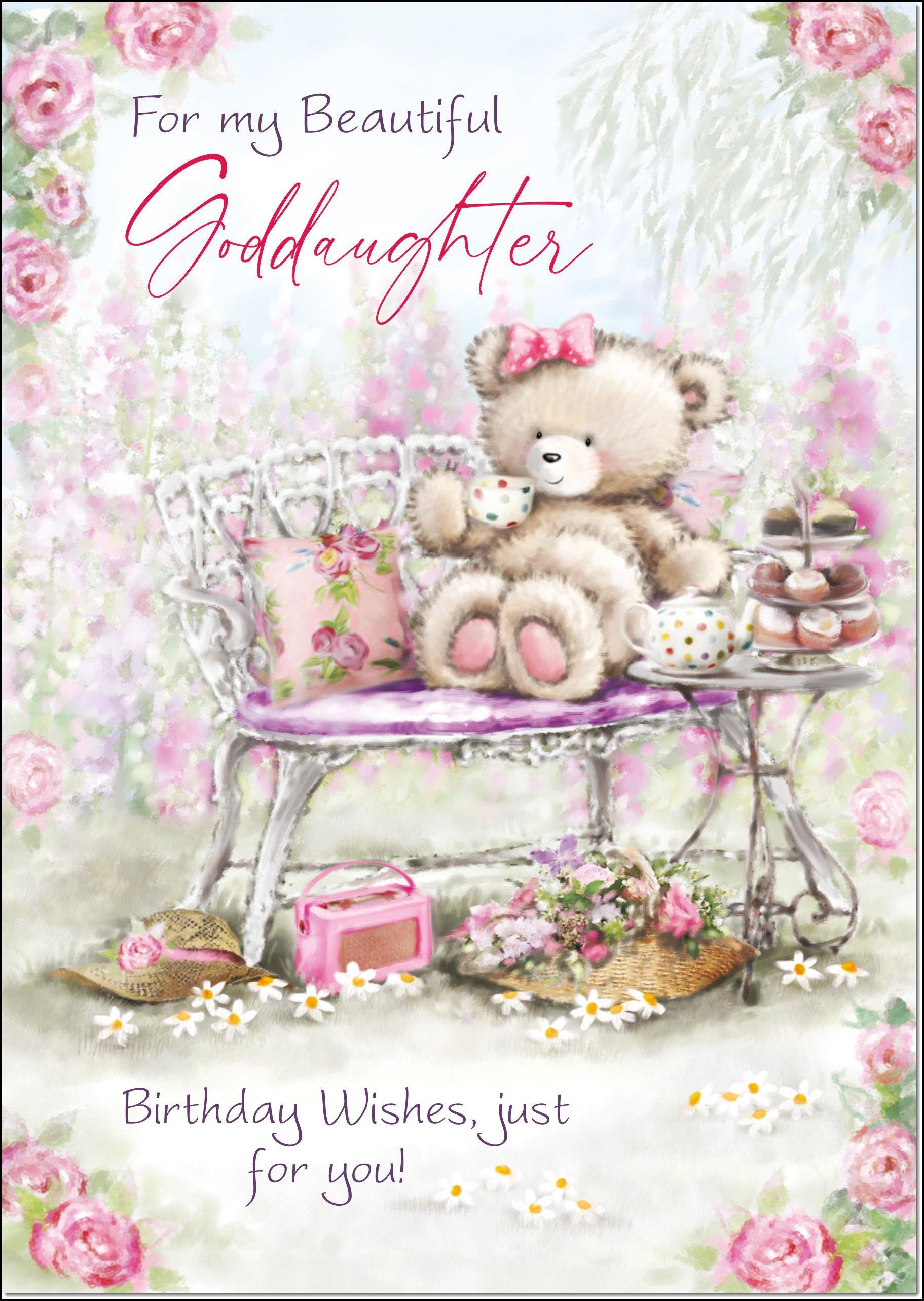 Goddaughter Birthday Card Cute Teddy's Afternoon Tea