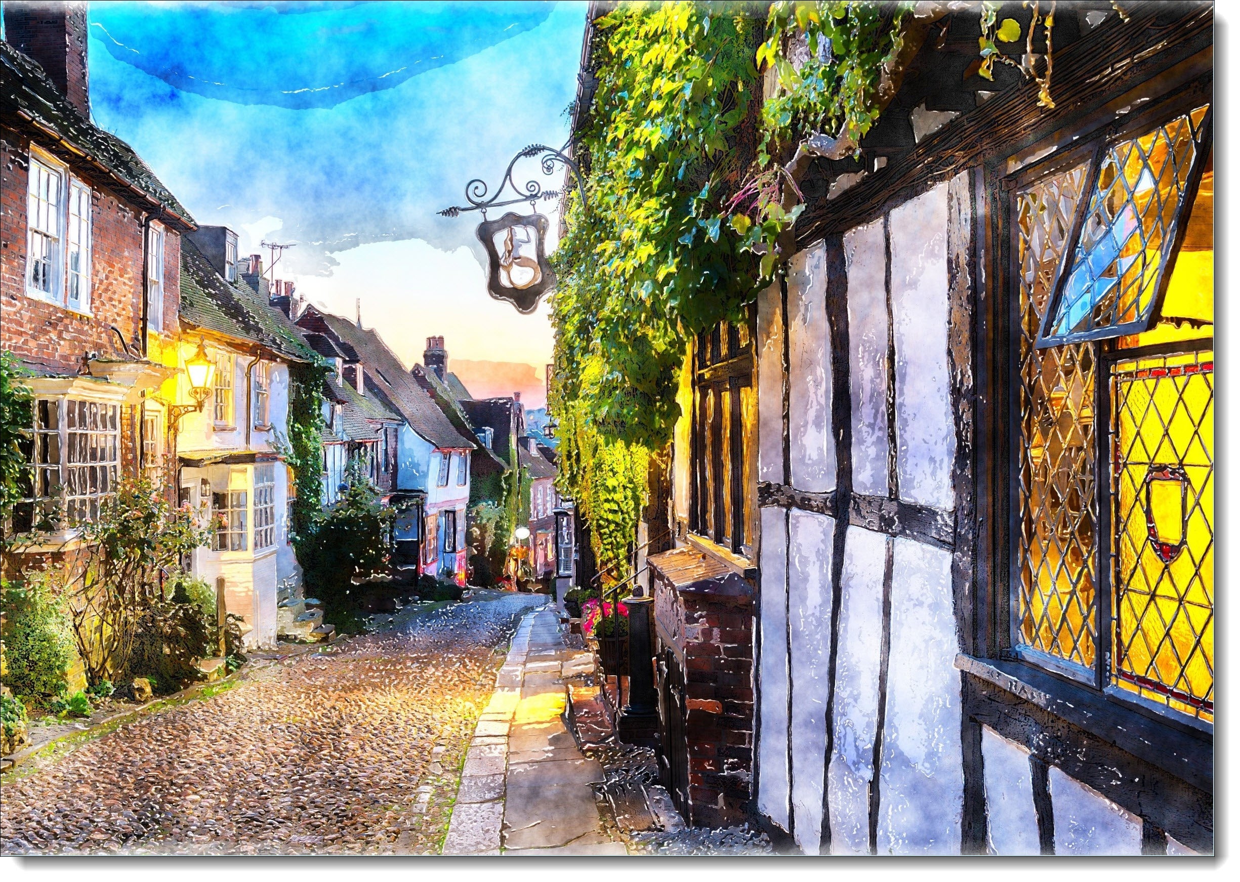 Art Birthday Card Old Fashioned Street