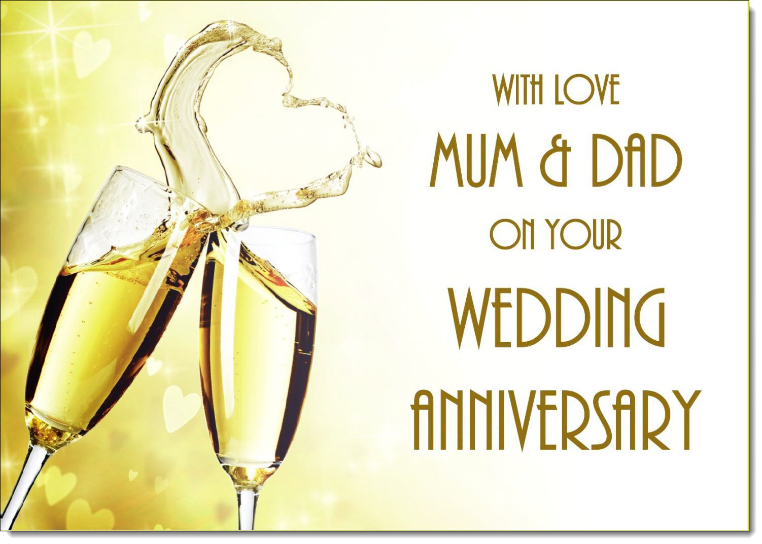 Mum & Dad Wedding Anniversary Card Love Heart Champagne Glasses