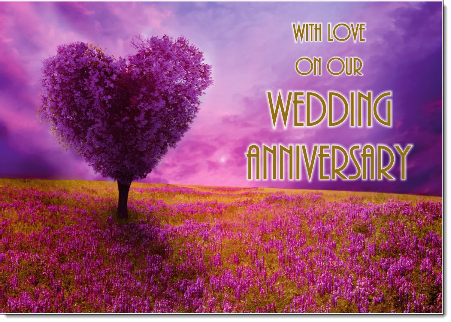 Our Wedding Anniversary Card Purple Love Heart Tree