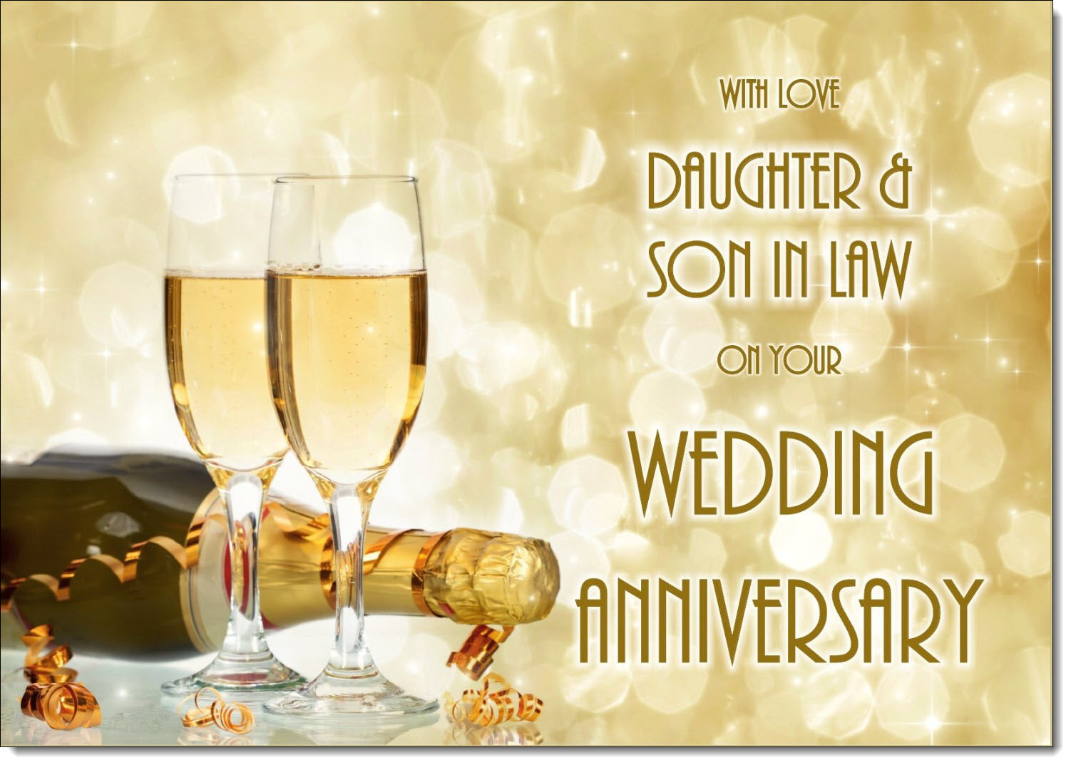 Daughter & Son-in-Law Wedding Anniversary Card Champagne Bottle and Glasses