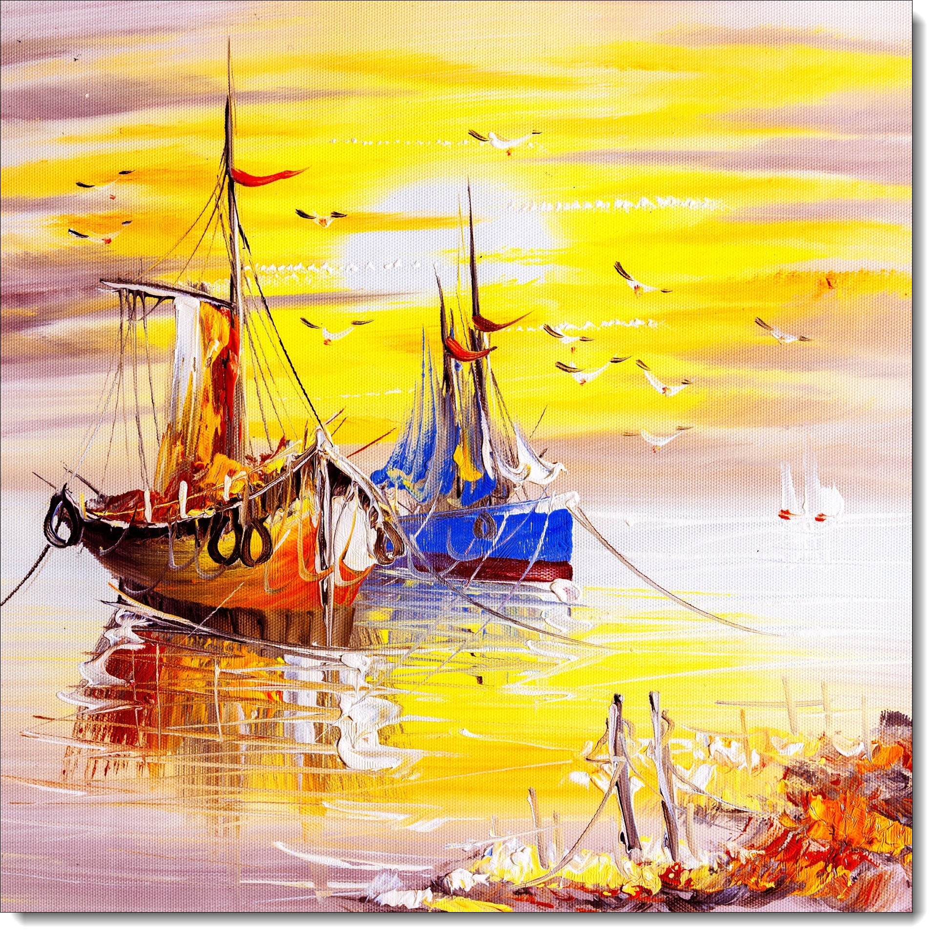 Happy Birthday Card Fishing Boat Painting