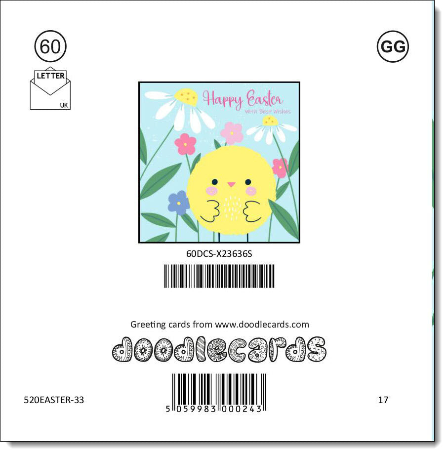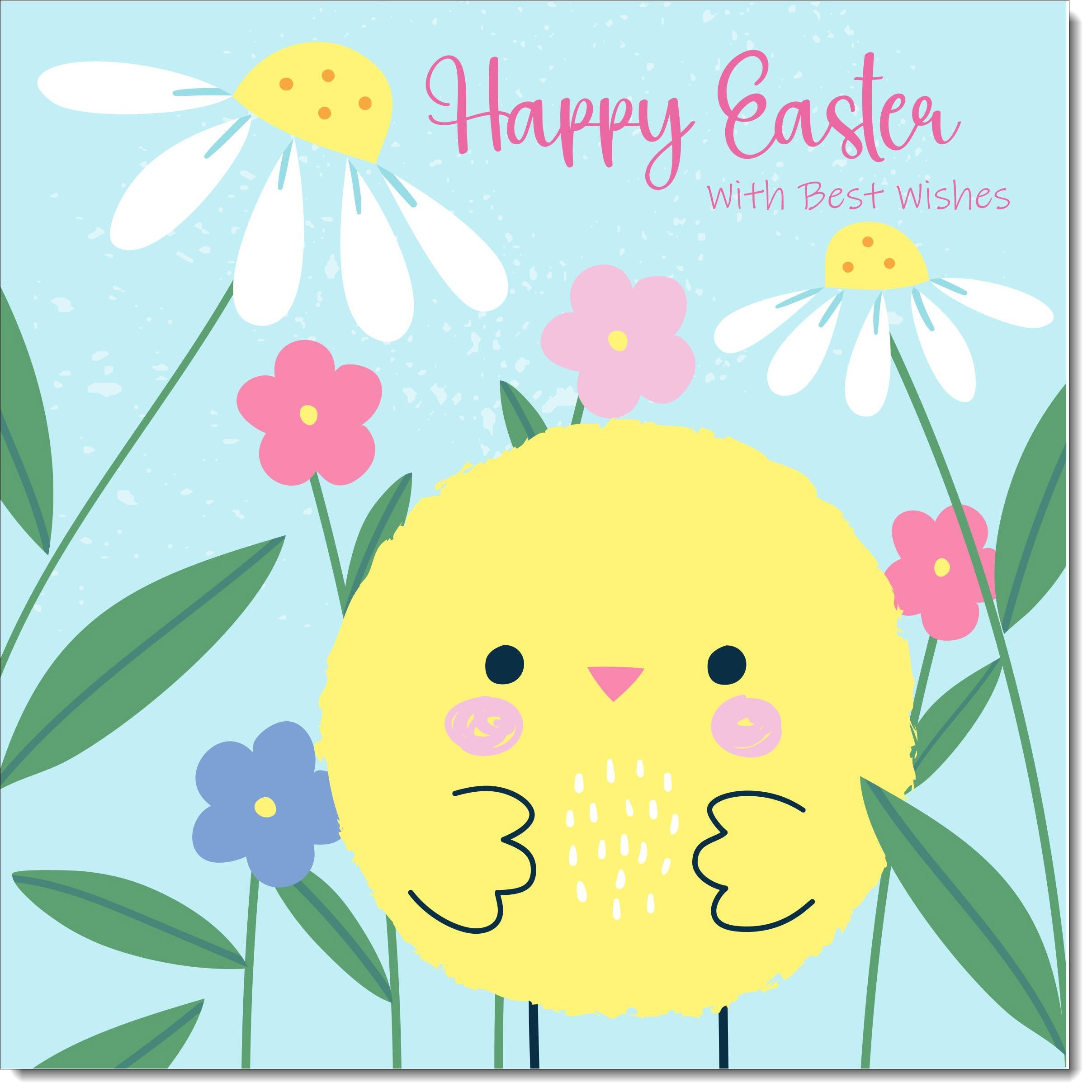 Easter Card Yellow Chick and Spring Flowers