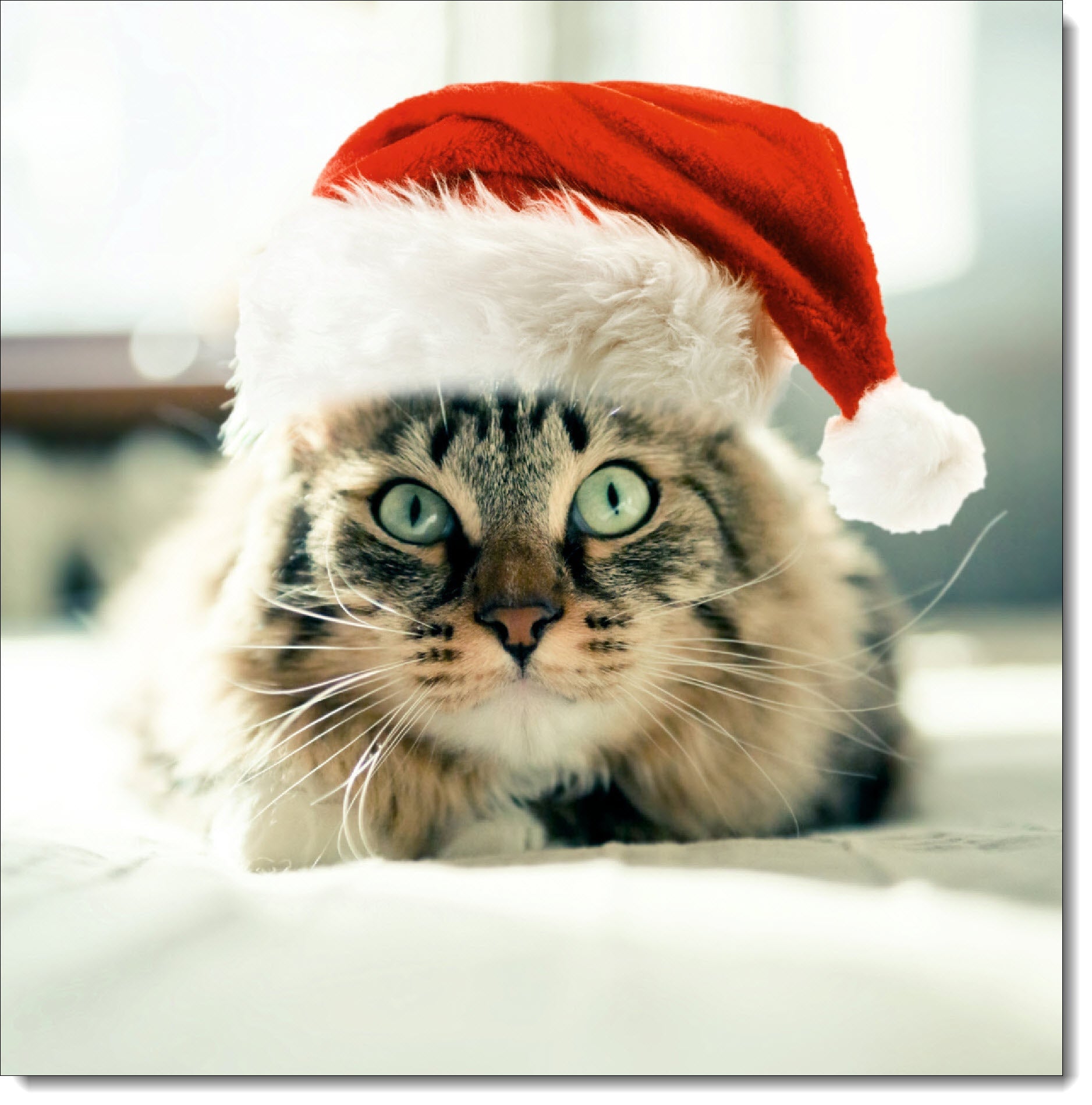 Christmas Card Tabby Cat in Santa's Hat