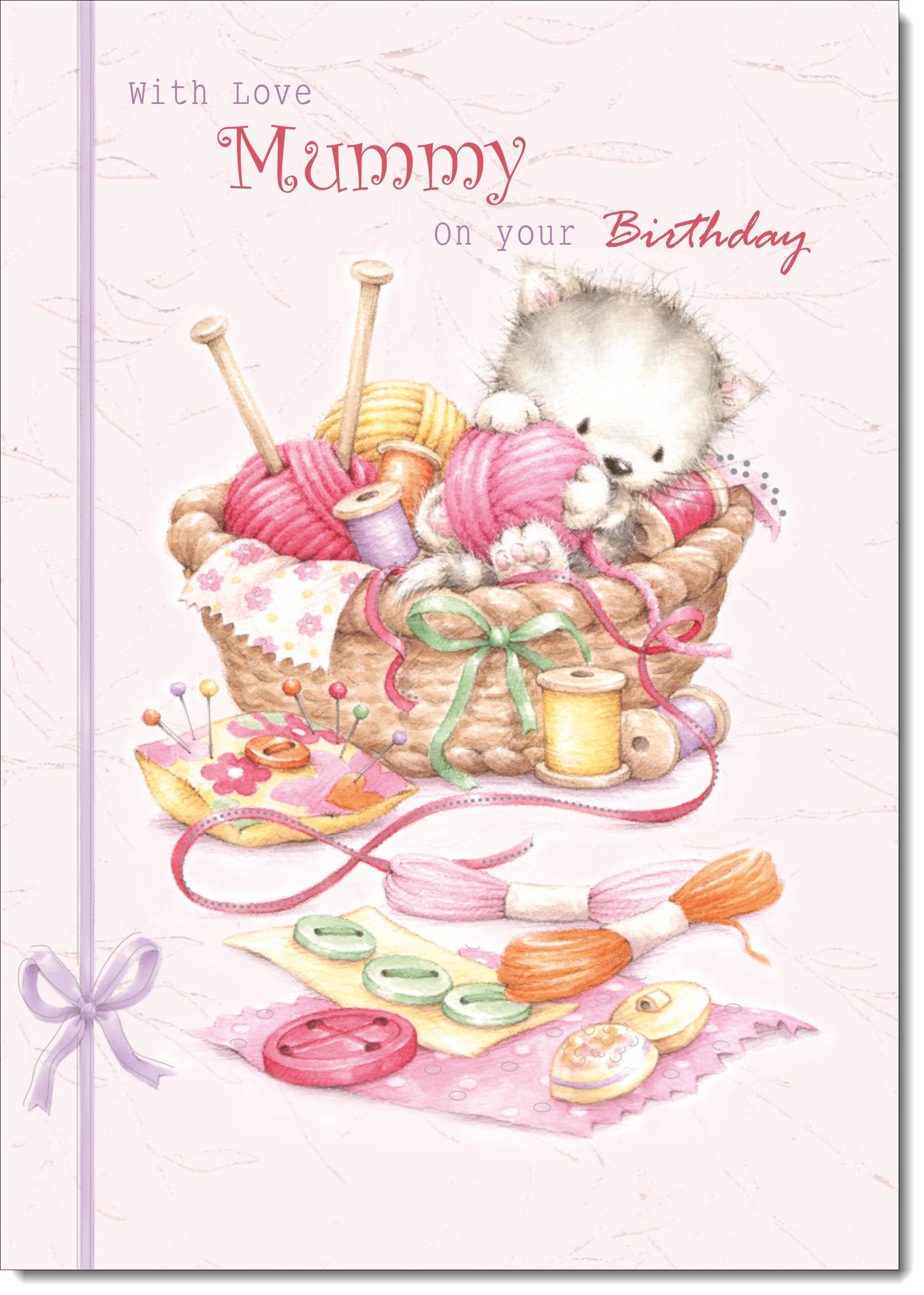 Mummy Birthday Card Kitten in Sewing Basket