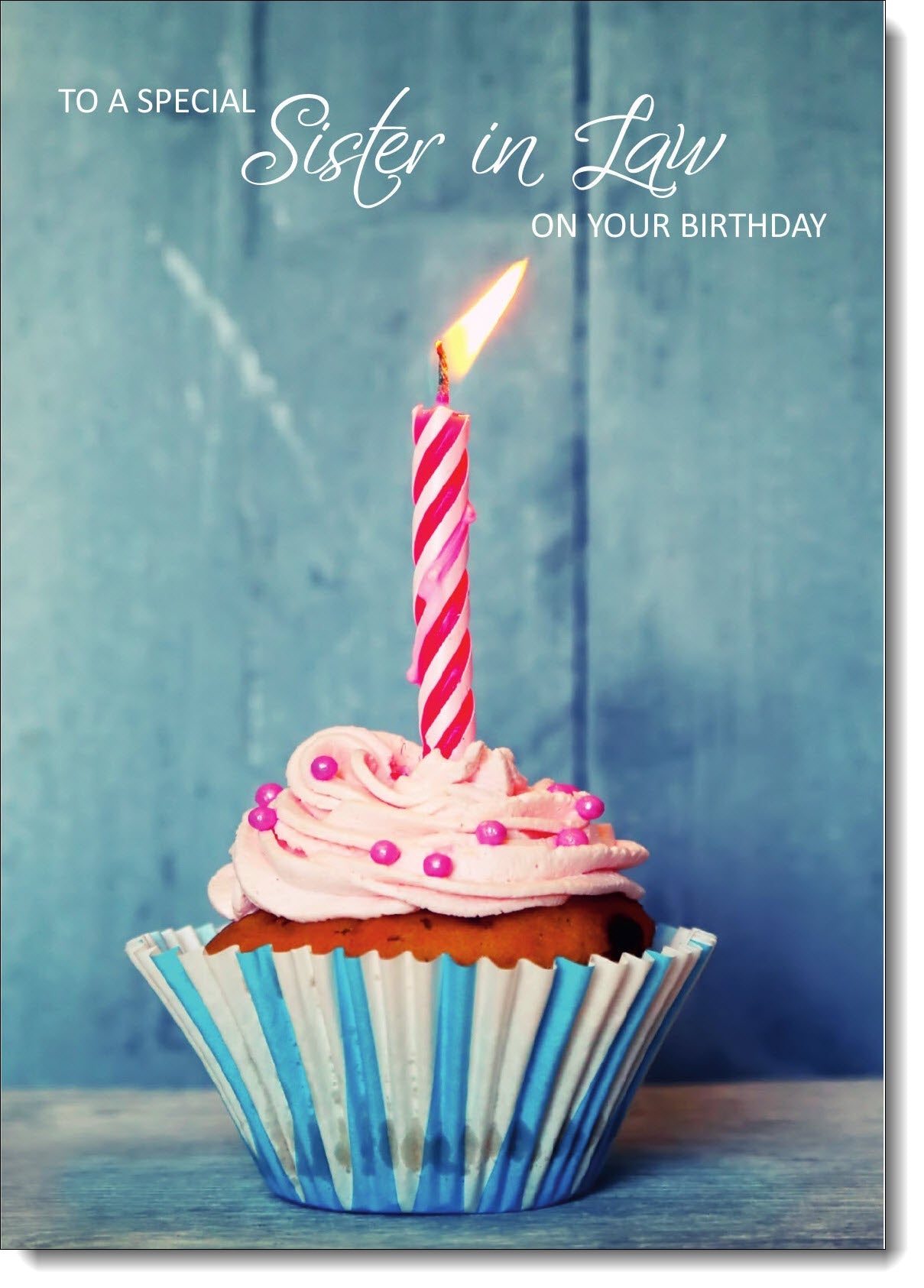 Sister-in-Law Birthday Card Cupcake and Pink Candle