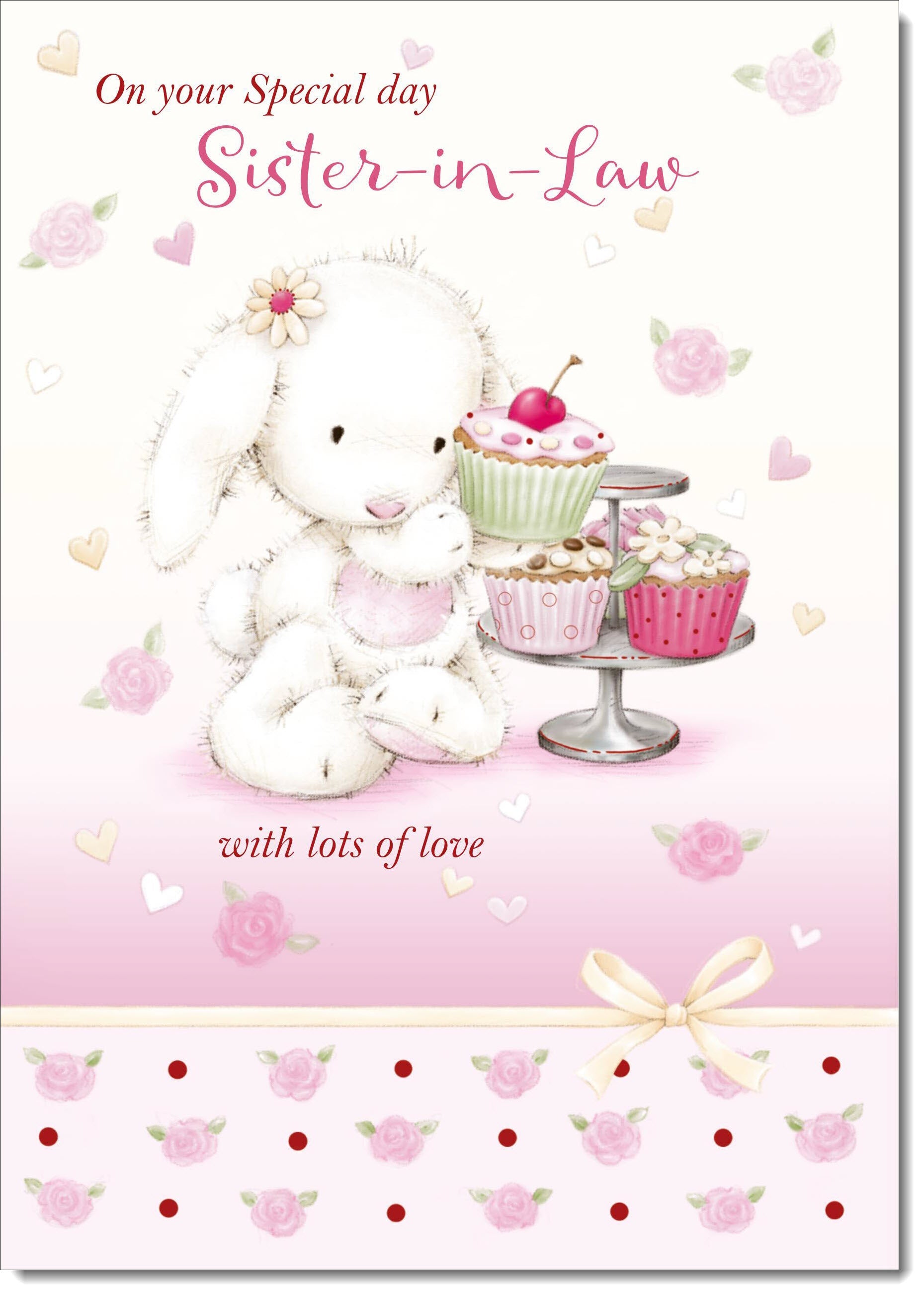 Sister-in-Law Birthday Card Cute Rabbit with Cake
