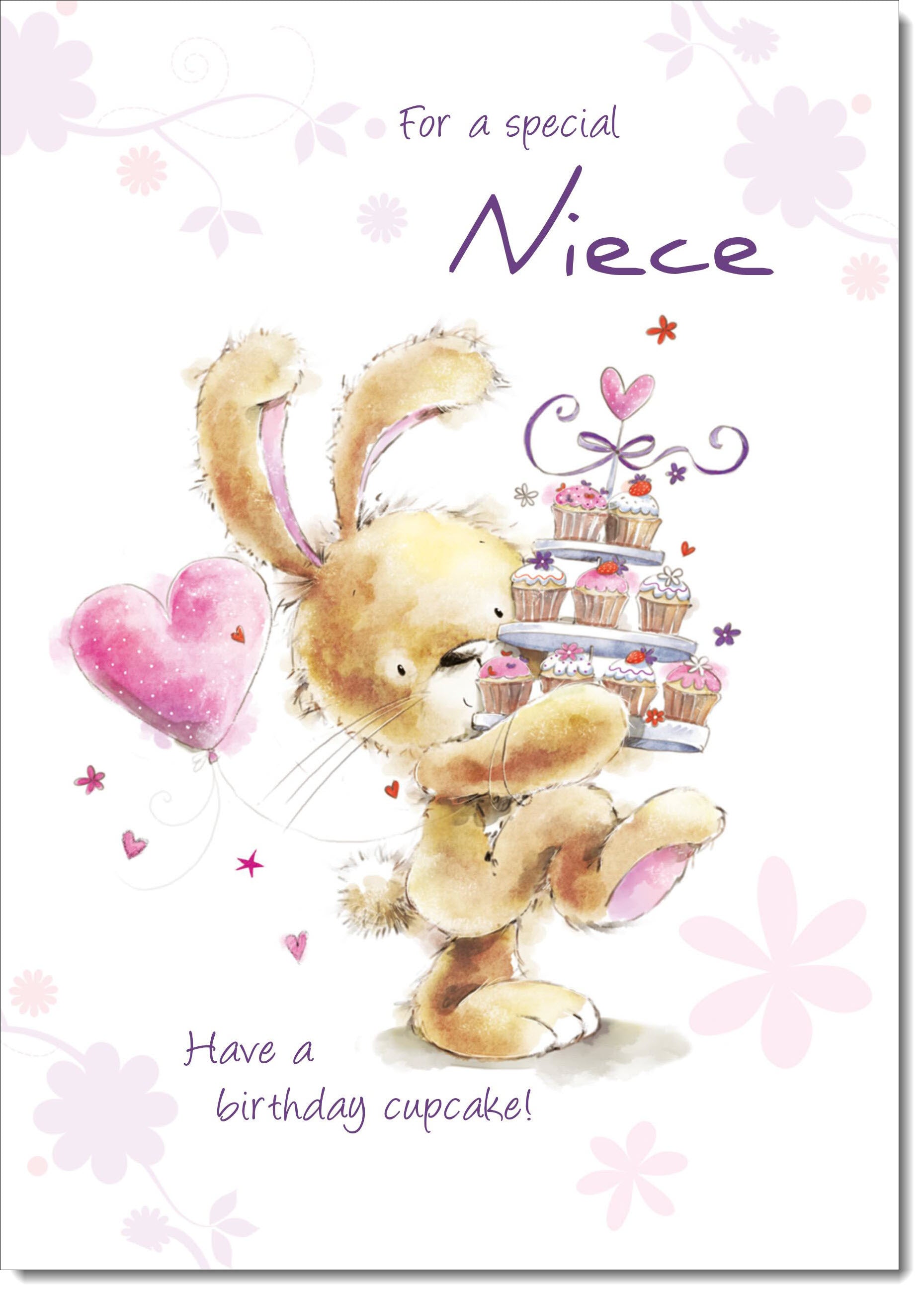 Niece Birthday Card Cute Rabbit with Cake