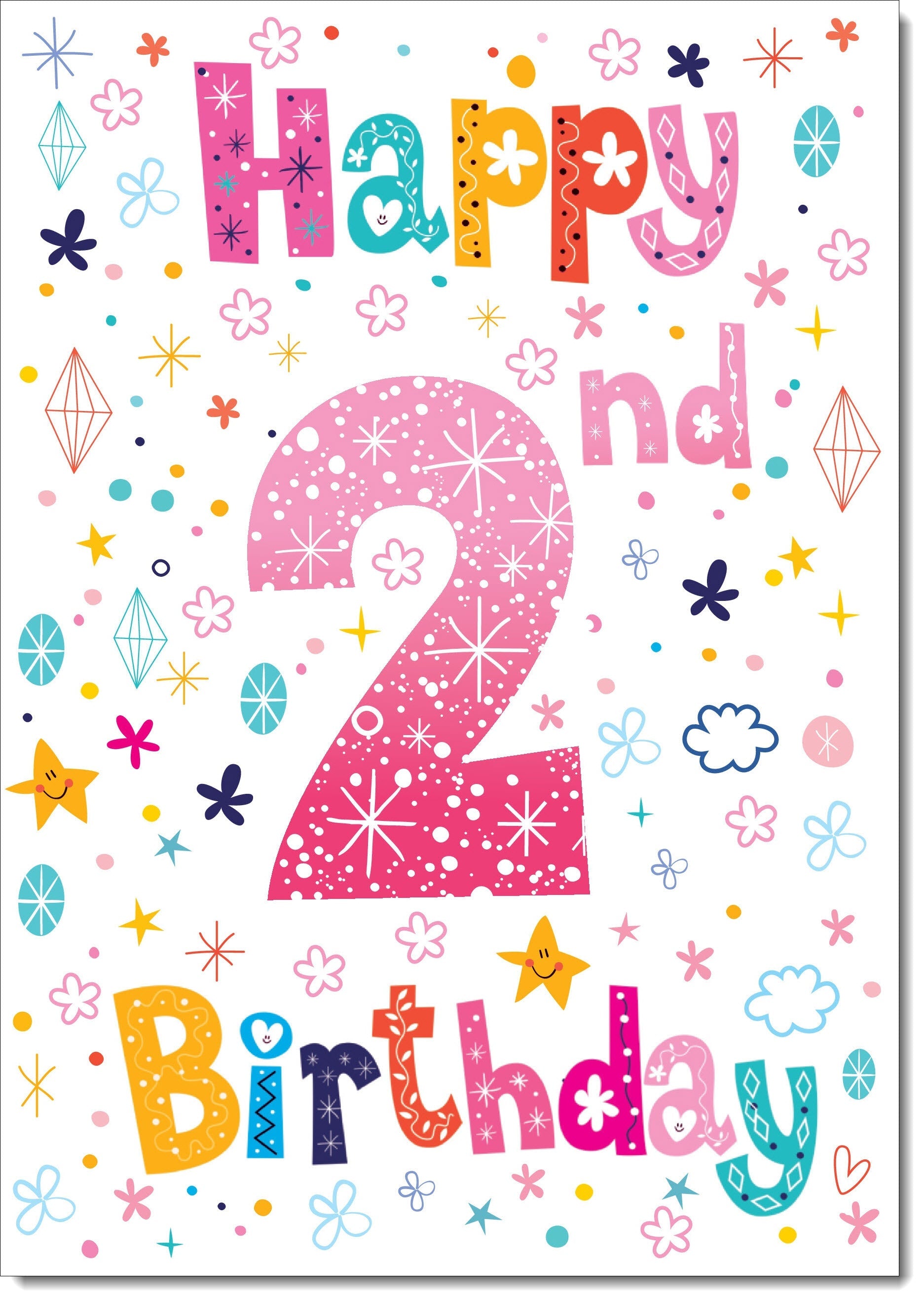 2nd Birthday Card Age 2 for Girl Pretty Font