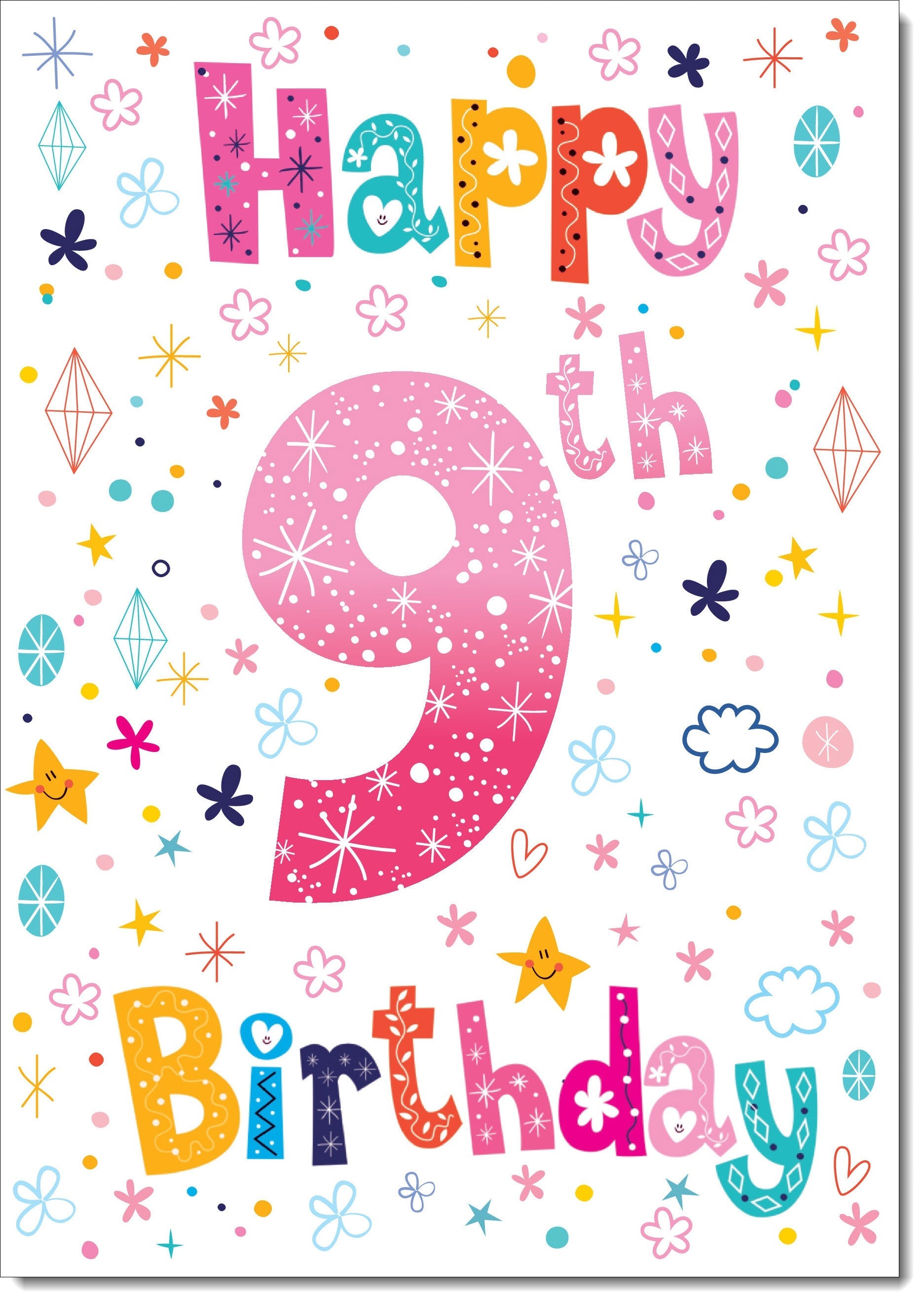 9th Birthday Card Age 9 for Girl Pretty Font