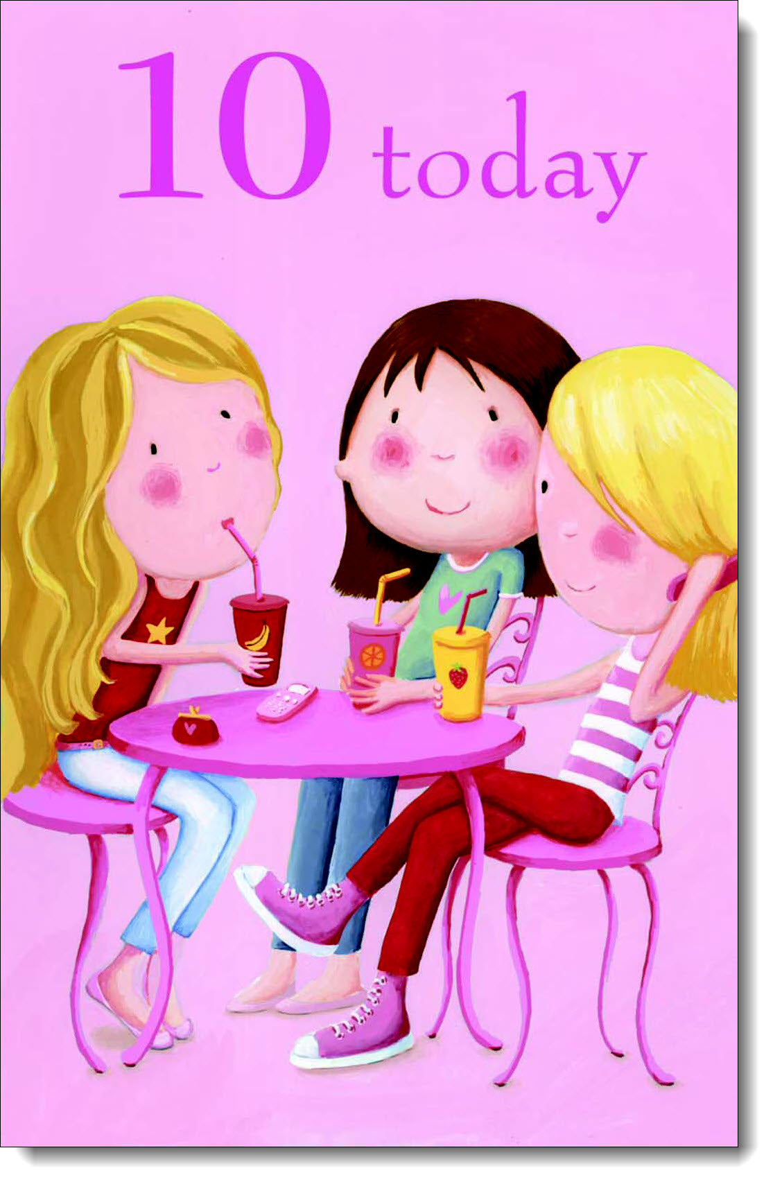 10th Birthday Card Age 10 for Girl Tea Party and Friends