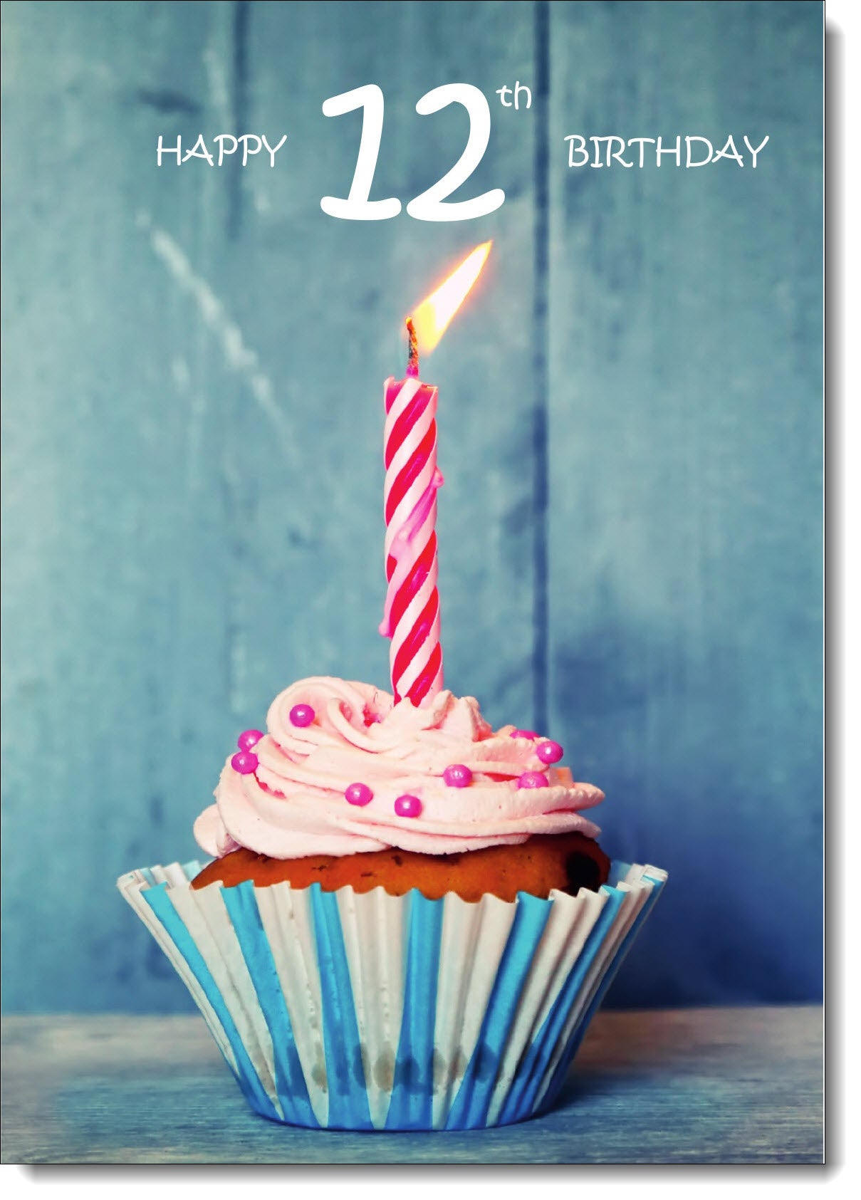 12th Birthday Card Age 12 for Girl Cupcake and Pink Candle