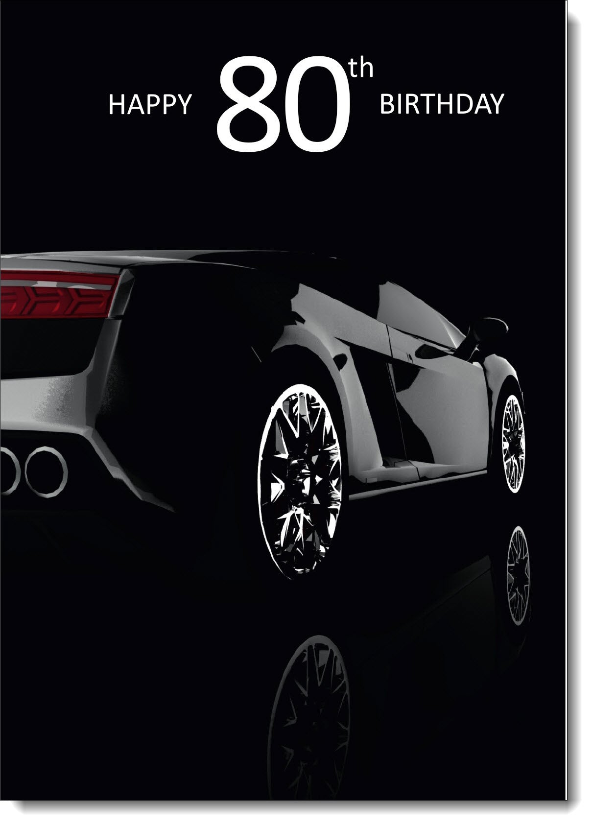 80th Birthday Card Age 80 for Him Black Lamborghini